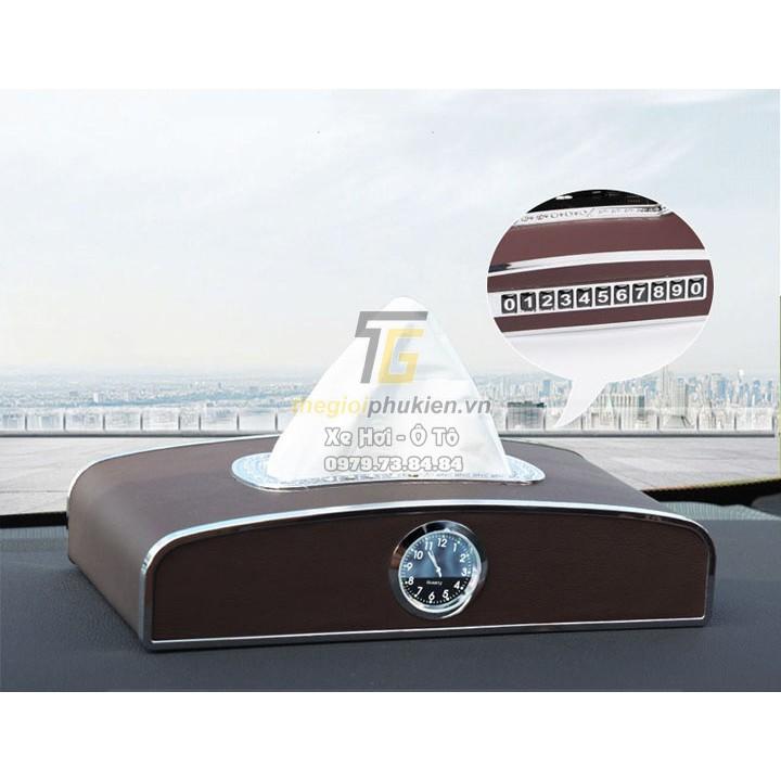 Mua tại TiktokSản phẩm được làm bằng chất liệu nhựa gia dụng PP tổng hợp, bọc da chống thấm nước, có độ bền cao. Đường đai trang trí được mạ Crom sáng bóng và đẹp mắt. Bên trong: là lớp nhung mềm mại sạch sẽ, dưới đế sẽ có nắp mở để bạn đặt khăn giấy vào trong. Thiết kế nhỏ gọn, tiện dụng, giúp bạn trang trí không gian sống gọn gàng. Hộp đựng khăn giấy có thể để ở nhiều vị trí trên xe như: mặt taplo, tỳ tay, treo sau gối đầu, gắn trên tấm chắn nắng… Sản phẩm Fullbox bao gồm: 1 hộp đựng khăn giấy 3 trong 1, 5 dãy chữ số (đáp ứng được cả những bạn dùng sim điện thoại đến lục quý), 1 xấp khăn giấy, 1 catalogue hướng dẫn sử dụng, 1 bộ giá kẹp, 1 đế cao su chống trượt. Sản phẩm có 6 màu: Đen, Nâu, Đỏ mận, Xanh rêu, Kem, Ghi.
