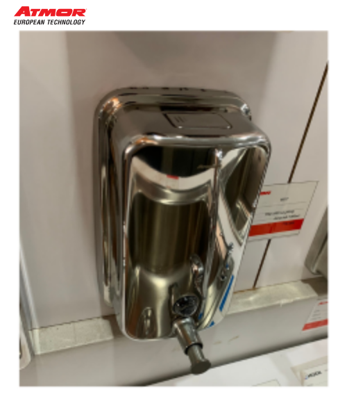 - Hộp nhấn xà phòng inox ATMOR 8077 là sản phẩm nằm trong nhóm phụ kiện phòng tắm luôn được tin dùng bởi các dự án công trình công cộng.