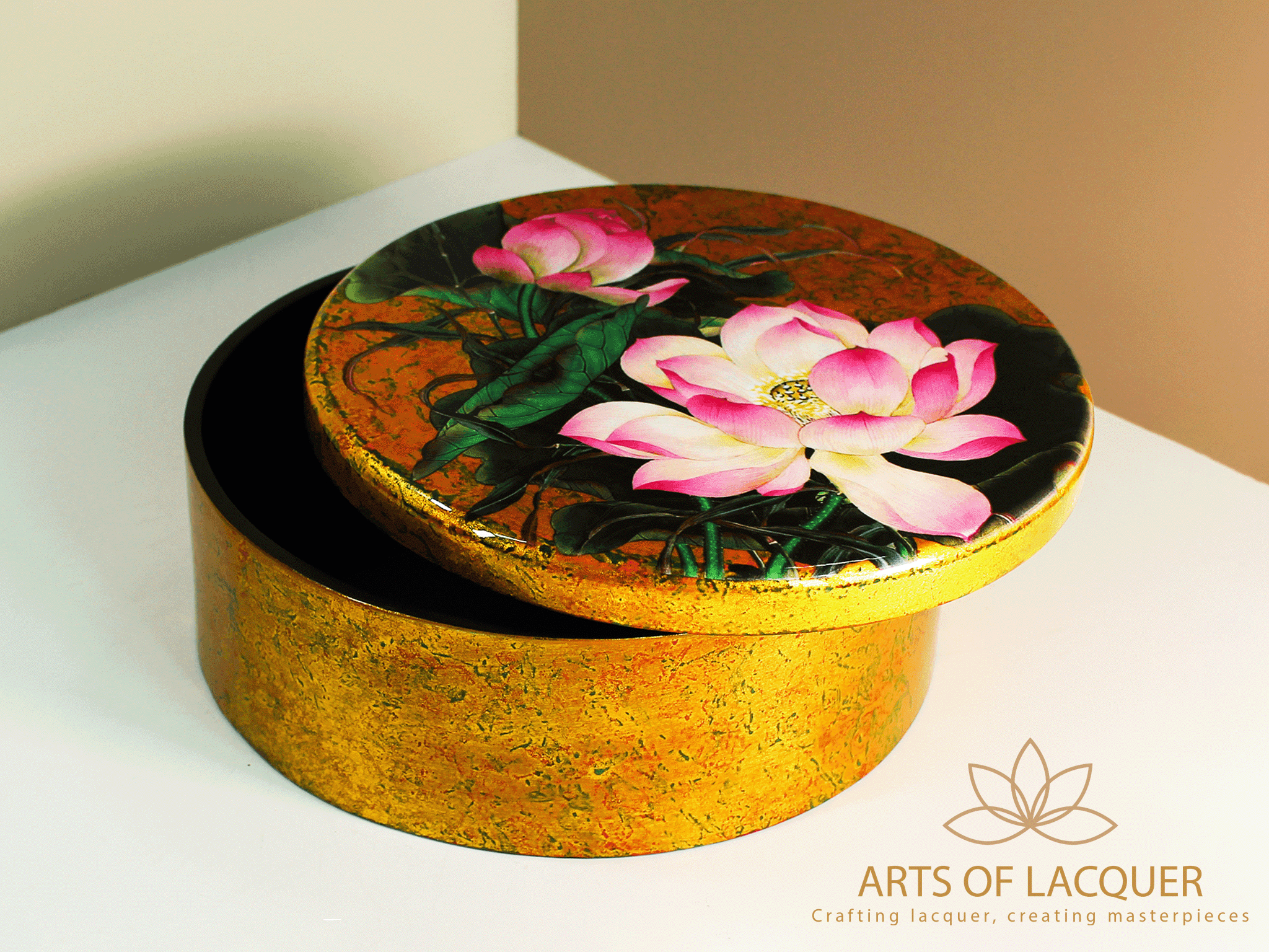 ✨Hộp Tròn Sơn Mài Hoa Sen Hồng Dát Vàng