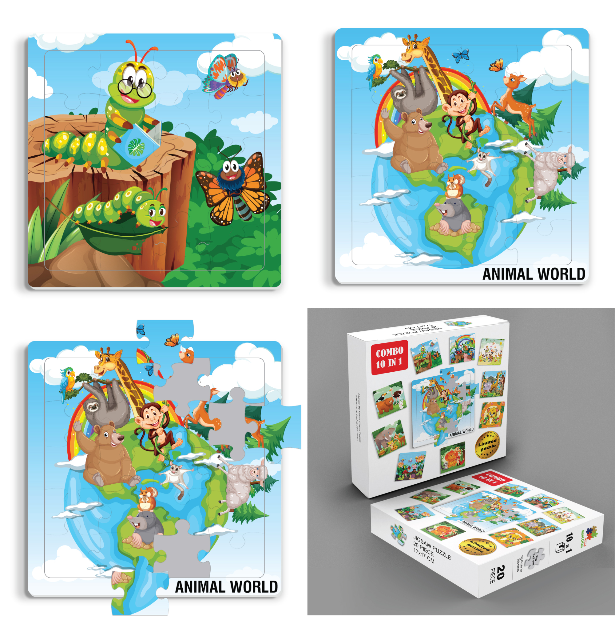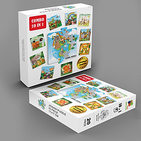 ✨Hộp xếp hình với combo 10 bộ ghép hình 20 mảnh, kích thước hình 17x17 cm, chủ đề động vật, chỉ có tại Minhchauco