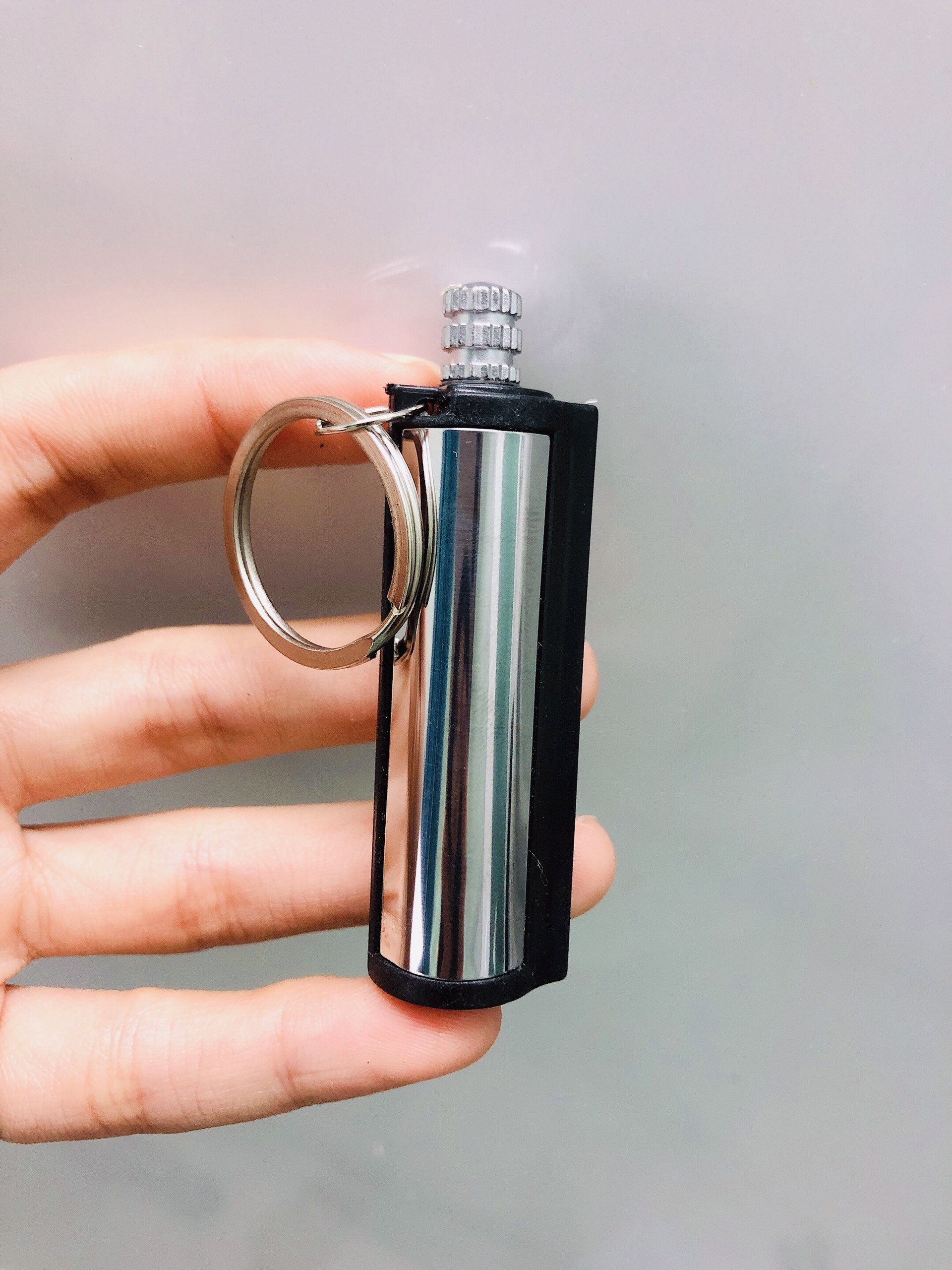 Mua tại TiktokHột quẹt bật lửa móc khóa diêm xăng sinh tồn hình Trụ Tròn - xài xăng