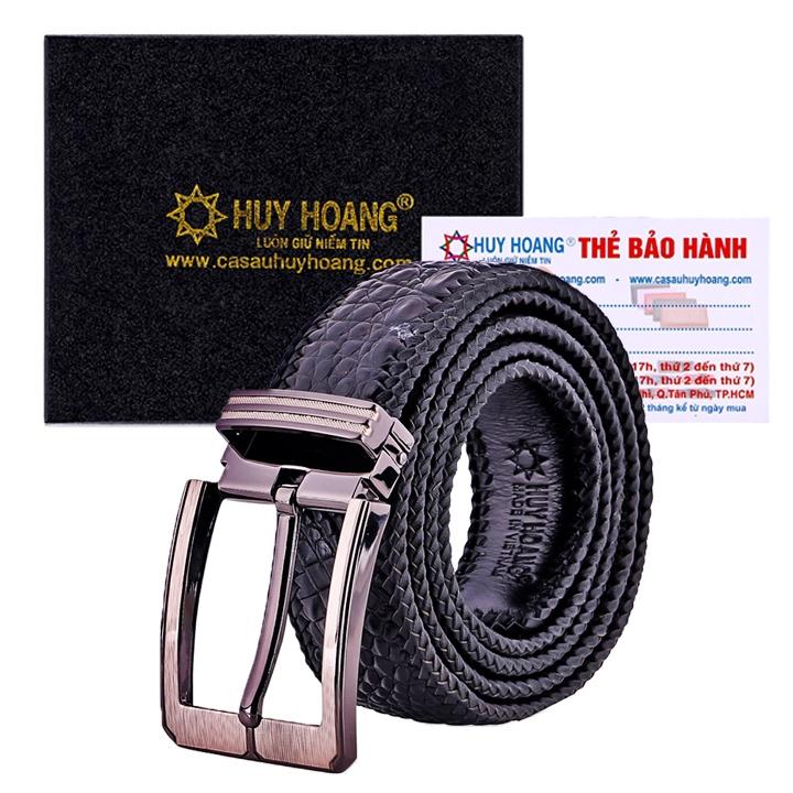 - Tên sản phẩm: Thắt lưng nam da cá sấu Huy Hoàng đan viền 4P đầu kim màu đen, nâu đất, nâu đỏ, vàng