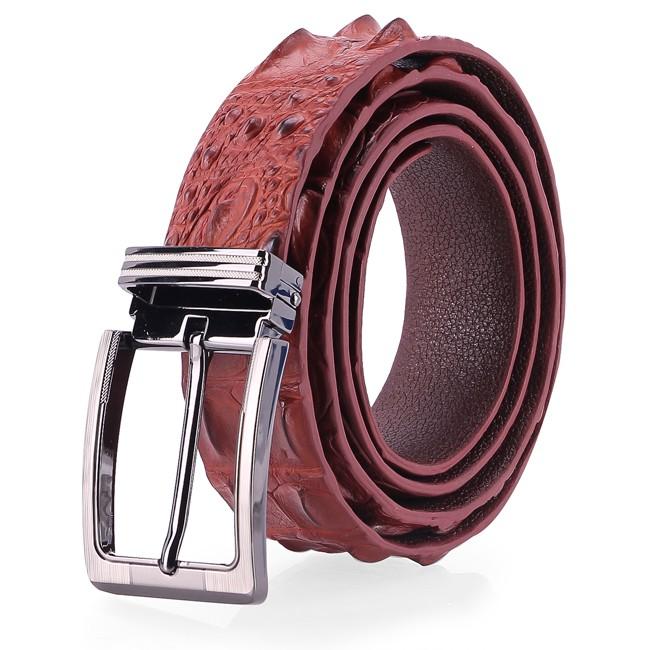 ✨HP4843 - Dây nịt nam da cá sấu Huy Hoàng 3,5P đầu kim màu nâu đỏ