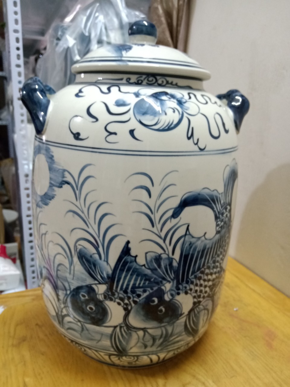 Hũ đựng rượu gạo gốm sứ Bát Tràng vẽ cá chép loại 15LHũ đựng rượu gạo gốm sứ Bát Tràng vẽ cá chép loại 15LHũ đựng rượu gạo gốm sứ Bát Tràng vẽ cá chép loại 15L