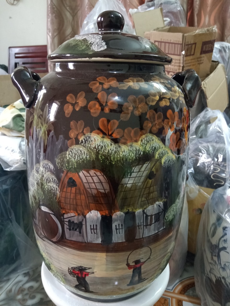 Hũ đựng rượu gạo men nâu vẽ phong cảnh Bát Tràng loại 30LHũ đựng rượu gạo men nâu vẽ phong cảnh Bát Tràng loại 30L