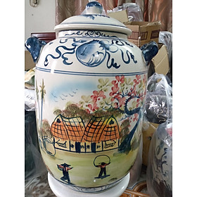 Hũ đựng rượu gạo vẽ phong cảnh Bát Tràng loại 15L (hoa văn ngẫu nhiên)Hũ đựng rượu gạo vẽ phong cảnh Bát Tràng loại 15L (hoa văn ngẫu nhiên)
