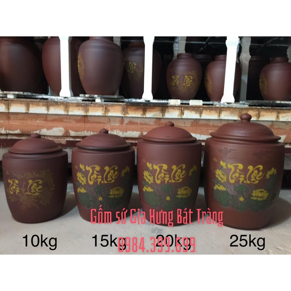 Hũ đựng gạo, chĩnh gạo, tài lộc, 10-15-20-25-30 kg gốm tử sa bát tràng tinh vân 0986469896