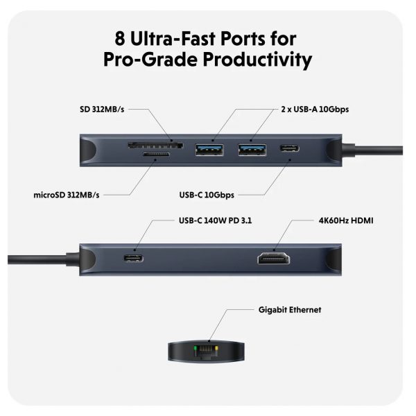 HyperDrive #USBCHub #4K60Hz #USB10Gbps #PD3.1 #GigabitEthernet #EcoSmart #MacBook #Laptop #TruyềnDữLiệu #TruyềnẢnhVideo #BảoVệMôiTrường #SạcNhanh