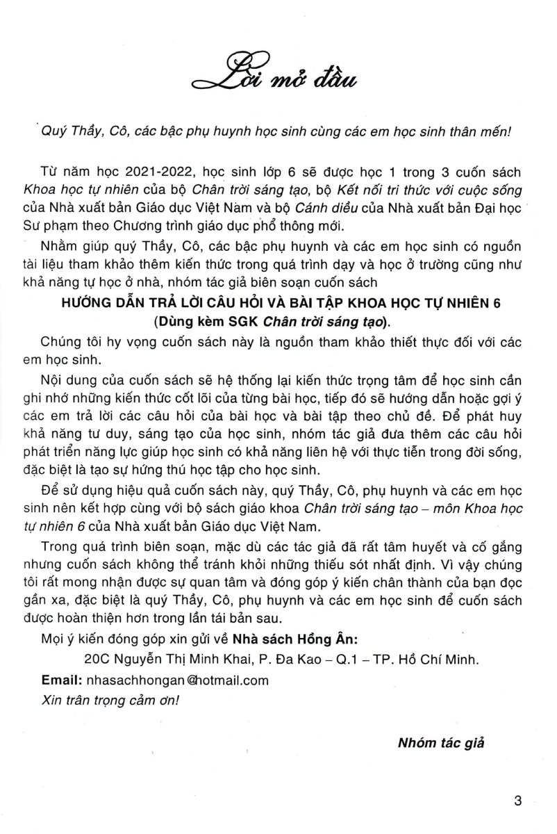 Để sử dụng hiệu quả cuốn sách này, quý Thầy, Cô, phụ huynh và các em học sinh nên kết hợp cùng với bộ sách giáo khoa Chân trời sáng tạo – môn Khoa học tự nhiên 6 của Nhà xuất bản Giáo dục Việt Nam.