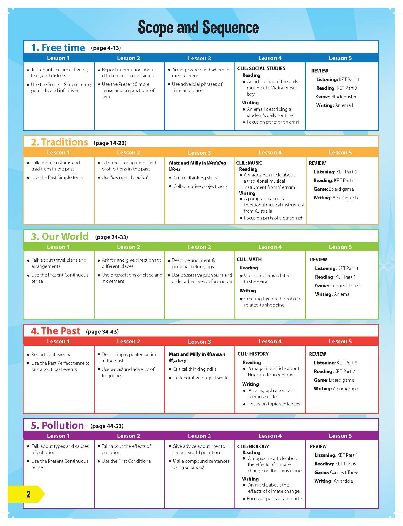 - Bám sát khung chương trình của Bộ Giáo dục và Đào tạo. Nội dung được biên soạn và thiết kế phù hợp với học sinh Việt Nam, lấy yếu tố văn hóa Việt Nam làm nền tảng xây dựng.