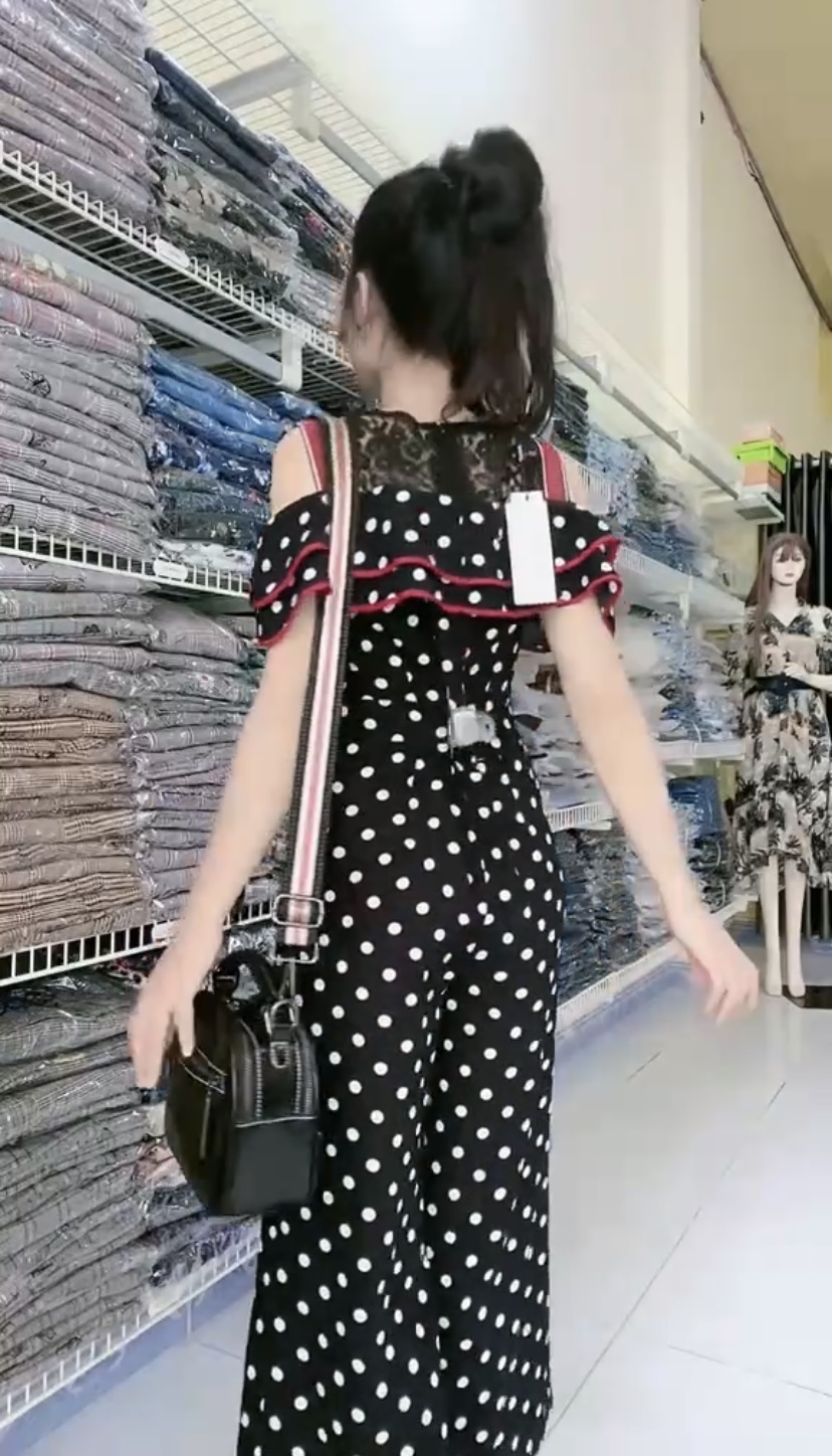 Jum trễ vai trẻ trung xinh xắnMã: JZEA001Màu: ĐenHọa tiết: Chấm biChất liệu: PolyesterVòng1/vòng2/vòng3/dài jum(cm): 86-giãn nhẹ/70-giãn nhẹ/88/126