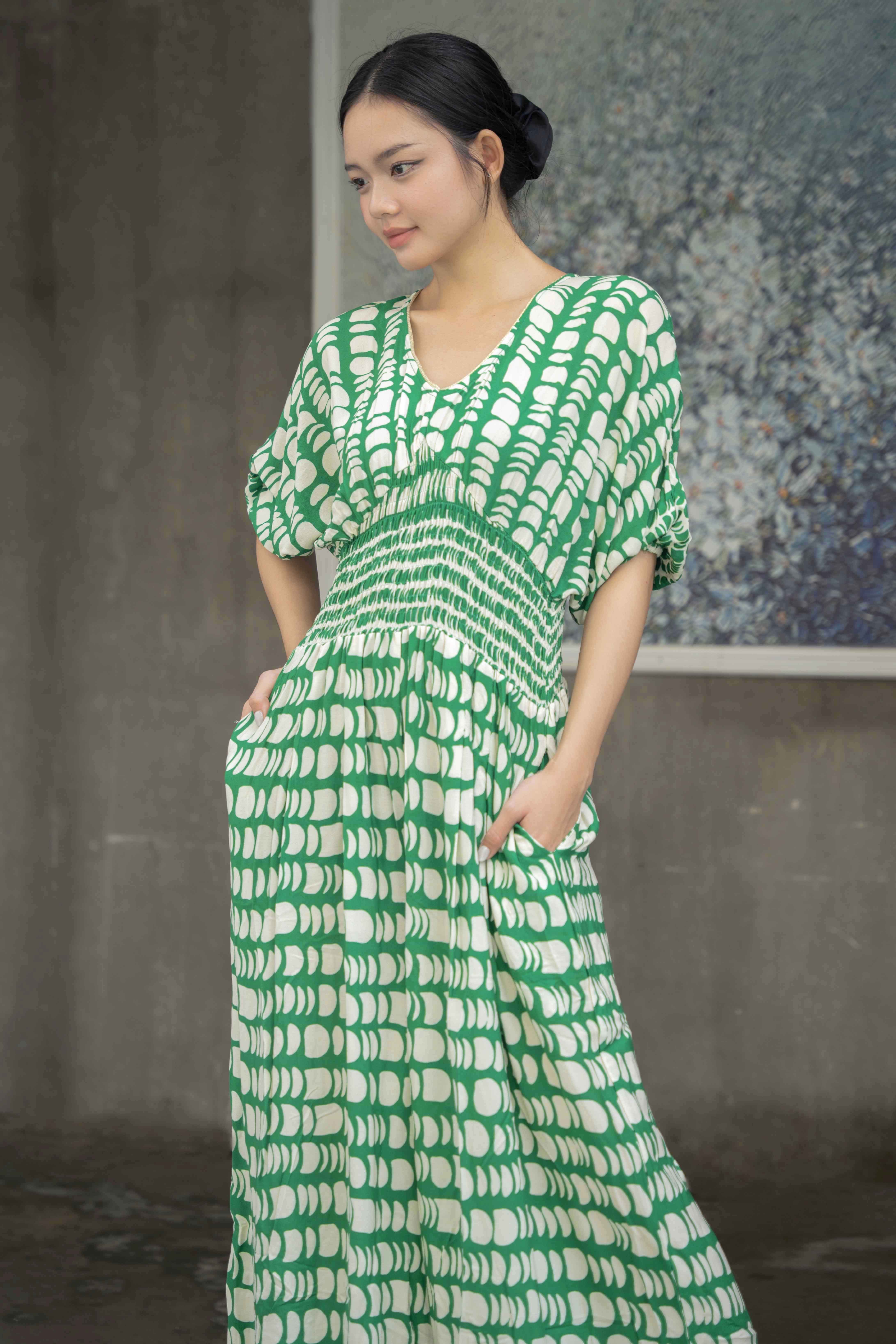Jumpsuit Dài Tay Cotton, chất liệu cotton mềm mại. Họa tiết thổ cẩm độc đáo. Thun eo co giãn. Chân quần xẻ tà. Có túi 2 bên hông. Dài 135cm (45x135) Phù hợp đi biển,