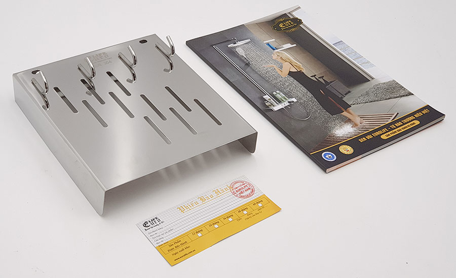 - Trọng lượng : 460 Grs * Bảo hành : 2 năm Với kệ cài dao muỗng Eurolife bạn không những tiết kiệm tối đa không gian bếp mà còn tạo ra sự gọn gàng, sang trọng bậc nhất cho không gian bếp nhà bạn. THIẾT KẾ TIỆN LỢI Ưu điểm vượt trội : Kệ cài dao- muỗng Inox Eurolife EL-K6 được làm từ Inox SUS 304 cao cấp, sáng bóng, dễ lau chùi vệ sinh. Kệ được thiết kế giá cài dao phía sau , an toàn khi sử dụng hay thao tác công việc bếp. Kệ được tích hợp bộ cài dao ngay sau sống kệ cực kỳ tiện dụng và an toàn. Ngoài ra kệ còn có thể treo vá-muỗng lớn, và phụ kiện bếp. Ngoài ra kệ còn có thể treo vá-muỗng lớn, và phụ kiện bếp với 4 móc treo phía mặt bên ngoài kệ, rất tiện dụng. Mặt kệ được thiết kế với các lỗ thoát nước, thông hơi, thoáng khí giúp vật dụng luôn khô ráo , sạch sẽ. Các móc treo bằng Inox 304 được hàn chặt chẽ, chịu lực cao, tiện dụng cho gian bếp. Kệ được làm từ Inox SUS 304 dày 1mm, sáng bóng, không han rỉ và bền bỉ với thời gian. LẮP ĐẶT ĐƠN GIẢN Kệ được lắp đặt đơn giản với 2 ốc vít phía sau lưng. Ốc vít và tackle đi kèm THÔNG SỐ KỸ THUẬT BỘ SẢN PHẨM ĐẦY ĐỦ TIỆN DỤNG CHO MỌI CĂN BẾP Kệ bếp Inox Eurolife được test và chứng nhận bởi Trung Tâm Kỹ Thuật Tiêu chuẩn Đo Lường Chất lượng 3 ( Quatest 3 ) - Chịu tải trọng : 10kg trên bề mặt sản phẩm - Sản phẩm không ăn mòn , không hỏng khi phun muối - Vật liệu sạch, không chì , an toàn khi sử dụng Sản phẩm chất lượng cao, mang đến sự sang trọng và đẳng cấp cho gian bếp nhà bạn. CHẤT LƯỢNG HÀNG ĐẦU Thương hiệu Eurolife Việt Nam là một thương hiệu uy tín hàng đầu trên thị trường Việt Nam với 12 năm kinh nghiệm Các sản phẩm Eurolife đạt nhiều chứng chỉ uy tín trong nước như :