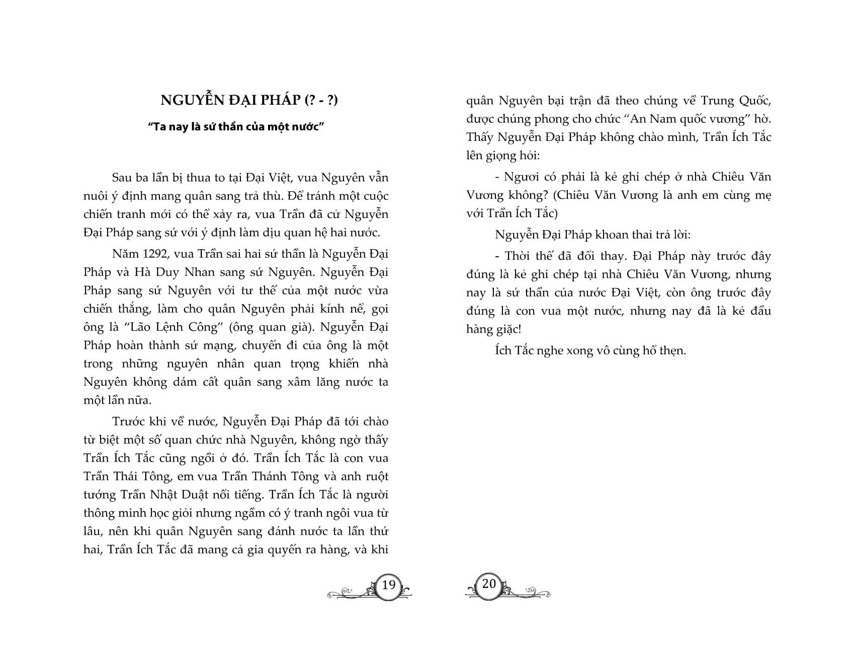 Để giải quyết những vấn đề đó, vai trò của các sứ thần xưa vô cùng quan trọng. Họ phải có tầm hiểu biết hơn người, tài ứng đối sắc sảo và nghệ thuật ngoại giao mềm dẻo, linh hoạt để chuyển bại thành thắng, chuyển nguy thành an. Nhất cử nhất động của họ đều ảnh hưởng đến sự tồn vong của cả dân tộc.