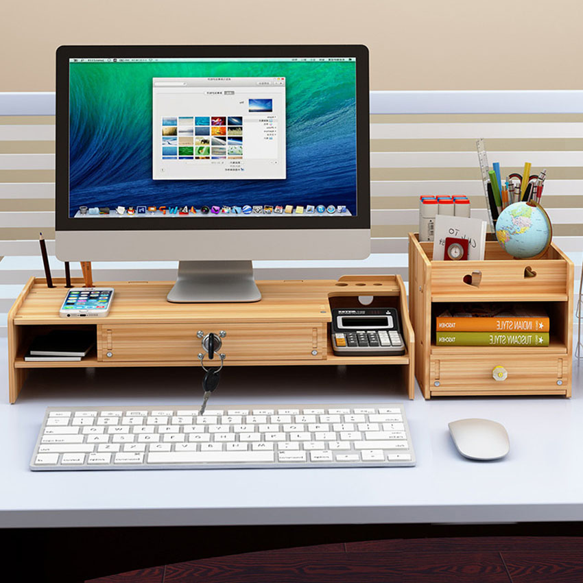 Kệ để máy tính giúp không gian bàn làm việc trở nên ngăn nắp, khoa học hơn.