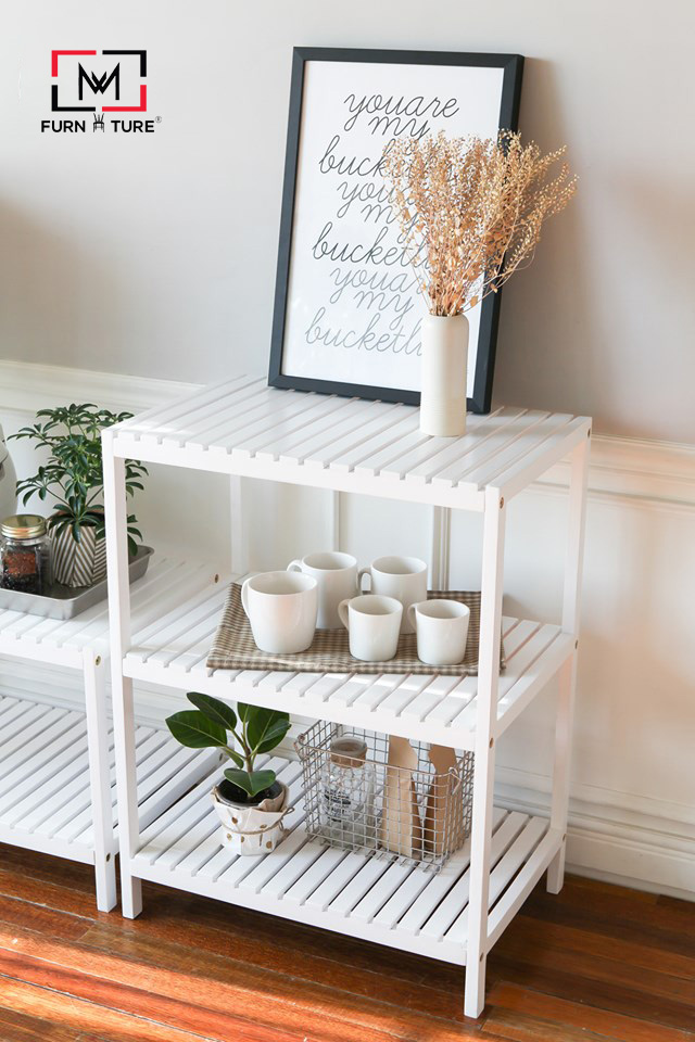 ✨KỆ GỖ ĐỂ LÒ VI SÓNG 3 TẦNG HÀN QUỐC MÀU TRẮNG - OVEN RACK 3F WHITE