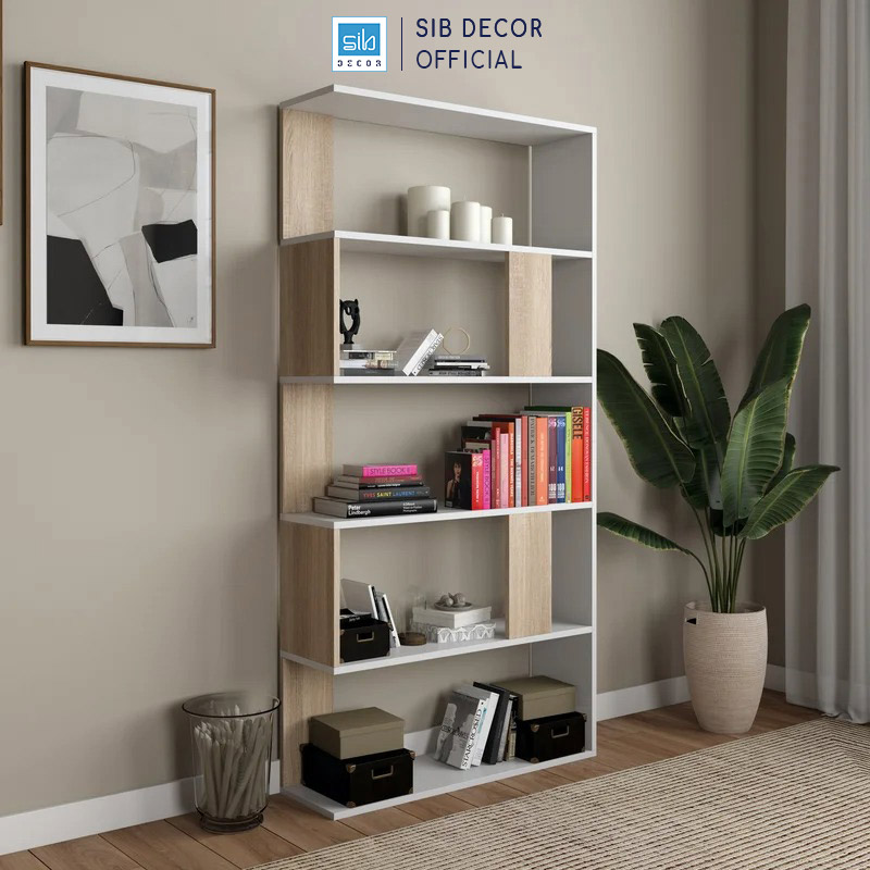 ✨Kệ Gỗ Để Sách Phá Cách Hiện Đại Màu Trắng Phối Vân Gỗ Sồi SIB Decor KSG52