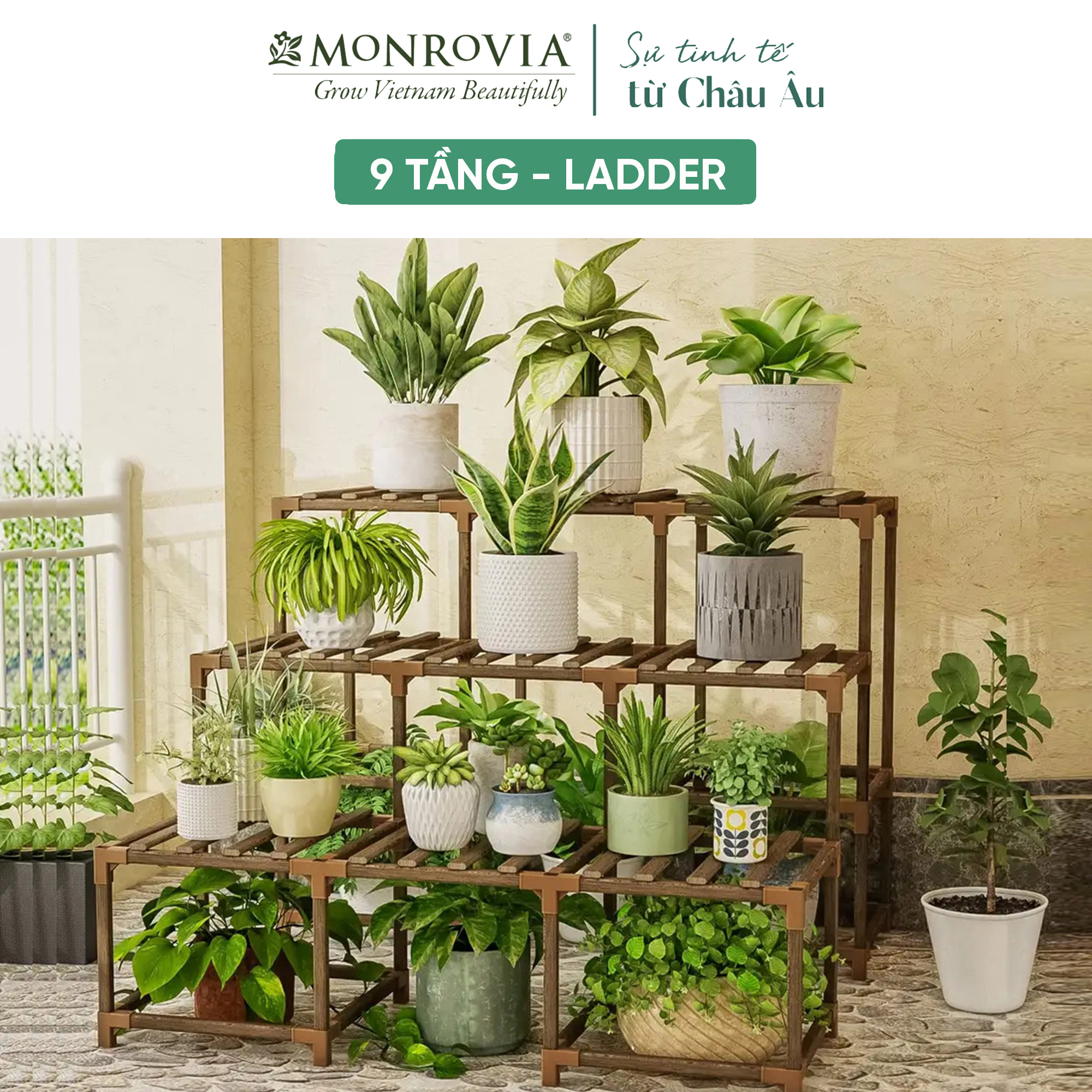 Kệ gỗ decor MONROVIA để cây trang trí trong nhà, ban công, từ 6 đến 15 tầng, tiêu chuẩn Châu Âu