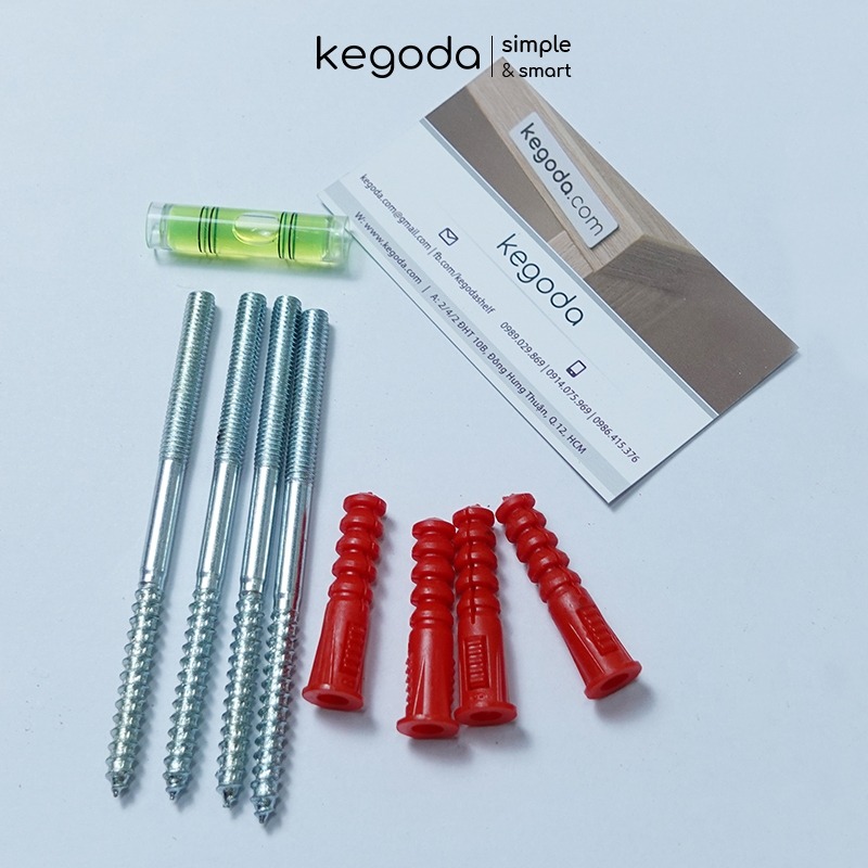 - Kệ được đóng gói cẩn thận & dày dặn đảm bảo an toàn trong quá trình vận chuyển. Sơ đồ treo kệ lên tường tỷ lệ 1:1 Bộ phụ kiện vít thép âm kệ: Gồm vít thép, tắc kê nhựa và Nivo mini (giấu chân) Bộ phụ kiện pát nhựa đinh 4 chân, nivo, vít (không cần khoan tường) — — — — — — — — — Hướng dẫn: - Giấy hướng dẫn lắp ráp chi tiết và phụ kiện đi kèm trong sản phẩm.