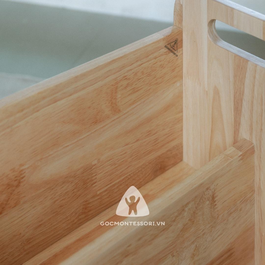 Hơn thế nữa, kệ sách có tay cầm hai bên giúp ba mẹ dễ dàng nhấc lên và di chuyển, sắp xếp căn phòng khi cần thiết. Các góc cạnh đều được mài nhẵn và bo tròn mang đến cảm giác thoải mái khi sử dụng.
