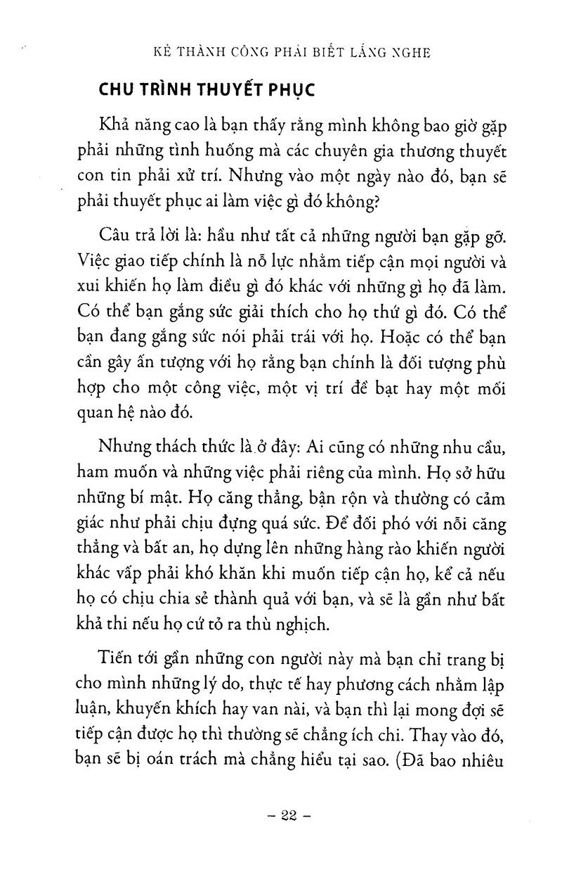 “Hãy lắng nghe giúp bạn biến những con người dường như không thể đạt tới thành những đồng minh tốt, những khách hàng trung thành, những đồng nghiệp và bạn bè thân thiết.”