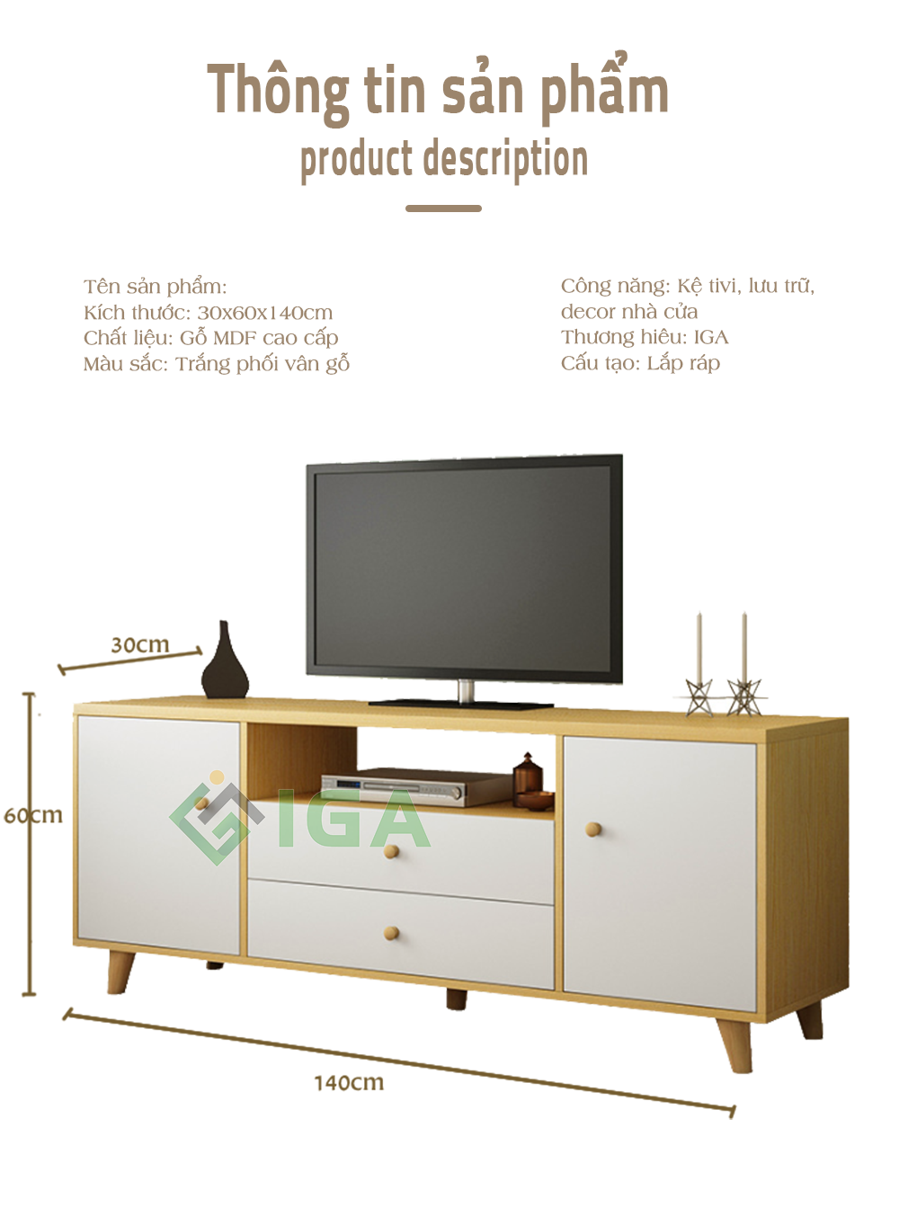✨Kệ Tivi Phòng Khách IGA Hiện Đại Dễ Dàng Kết Hợp Với Ghế Sofa và Bàn Trà - GP142