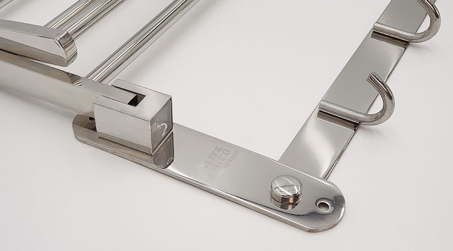 Kệ được tích hợp một móc treo 4 chấu bằng Inox bên dưới, giúp kệ có thể sử dụng được nhiều hơn cho việc treo móc quần áo và đồ dùng