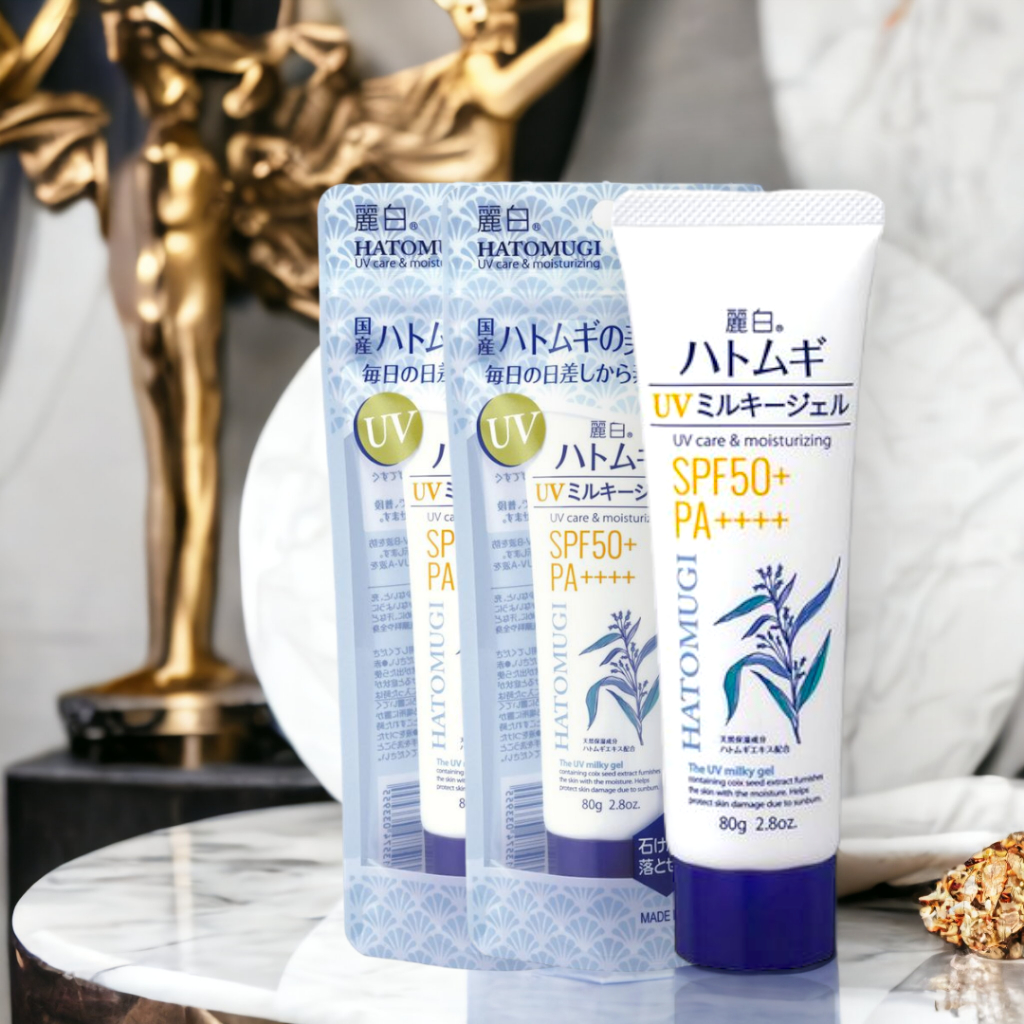 Sữa Chống Nắng Dưỡng Ẩm Ý Dĩ Hatomugi The UV Milky Gel SPF50+ PA++++ 80g – UV Care & Moisturizing