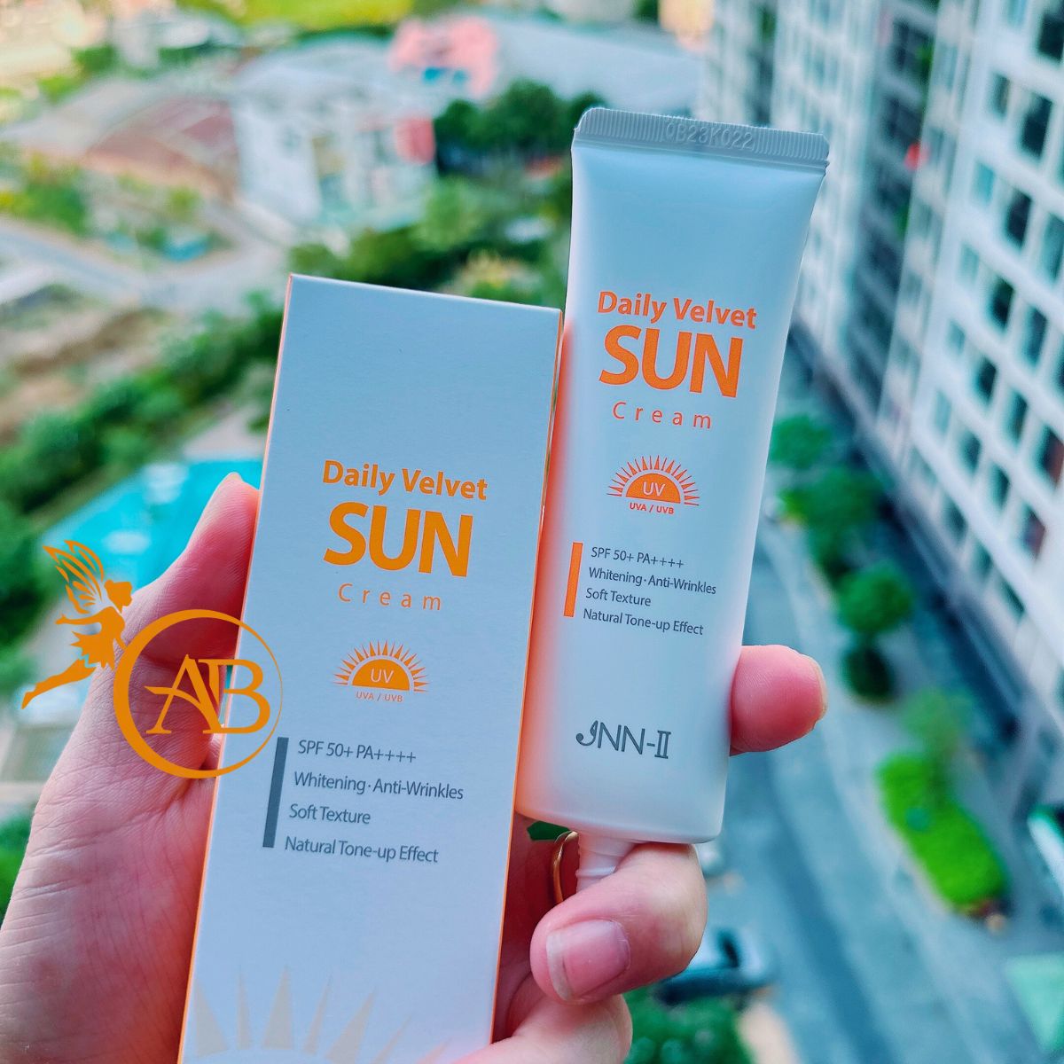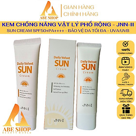 Kem chống nắng centella JNN-II Daily Velvet Sun Cream là kem chống nắng Hàn Quốc với các thành phần an toàn và lành tính đặc biệt phù hợp cho các làn da nhạy cảm, giúp bảo vệ da tối ưu chống lại các tác hại của môi trường bên ngoài, tia UVA, UVB và ánh sáng xanh đồng thời dưỡng trắng làm cho các làn da xỉn màu trở nên rạng rỡ tự nhiên.