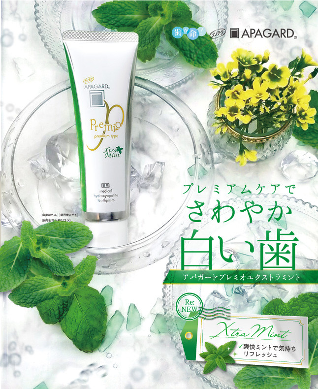 Kem Đánh Răng Cao Cấp Hương Bạc Hà Apagard Premio Xtra Mint 105g Xuất xứ: Nhật Bản Mã vạch:4987643122206 Công Dụng Kem Đánh Răng Cao Cấp Hương Bạc Hà Apagard Premio Xtra Mint 105 G : Kem đánh răng chứa Hydroxyapatite giúp loại bỏ vết bẩn,mảng bám trên răng . Ngoài ra thành phần Ngọc Trai giúp răng chắc khỏe trắng, bóng sáng , Hương bạc hà giúp thơm miệng sau khi đánh răng. Việc sử dụng kem đánh răng Apagard sẽ làm sáng bóng răng, làm sạch miệng, ngăn ngừa hôi miệng. Hướng Dẫn Sử Dụng: Lấy một lượng vừa phải lên bàn chải, chải đều lên răng sau đó làm sạch bằng nước. Bảo Quản: Tránh để nới quá lạnh và ánh nắng trực tiếp vào sản phẩm, để xa tầm tay trẻ em khi không sử dụng. Lưu Ý: Trong trường hợp thấy bất kỳ hiện tượng phát ban hoặc kích ứng nào sau khi sử dụng sản phẩm này, hãy ngừng sử dụng và tham khảo ý kiến bác sĩ, nha sĩ hoặc dược sĩ. Sản phẩm này là một loại kem đánh răng, vì vậy vui lòng không nuốt *Thành Phần Kem Đánh Răng Cao Cấp Hương Bạc Hà Apagard Premio Xtra Mint 105 G : Aqua, Dicalcium Phosphate, Glycerin, Xylitol, Hydroxyapatite, Silica, Peg-8, Sodium Lauryl Sulfate, Cellulose Gum, Flavor, Sodium Silicate, Trimagnesium Phosphate, Hydrolyzed Conchiolin Protein, Sodium Saccharin, Glycyrrhetinic Acid, Cetylpyridinium Chloride, Lauryl Diethylenediaminoglycine Hcl.