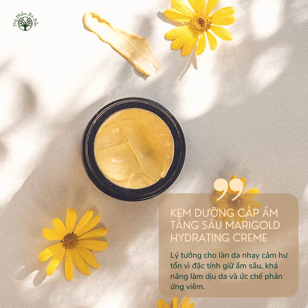 Kem Dưỡng Ẩm Chuyên Sâu, Phục Hồi Màng Ẩm Mukti Marigold Hydrating Creme bổ sung độ ẩm tầng sâu, và cung cấp acid béo thiết yếu da đang thiếu, kích thích phục hồi màng hydrolipid bảo vệ da, thích hợp cho những làn da khô và hư tổn cần củng cố lại kết cấu làn da.