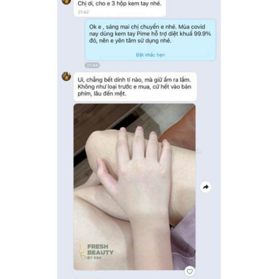Ngoài ra, nhờ chức năng kháng khuẩn nên kem dưỡng da tay Pime còn dùng được với các làn da tay bị mẩn ngứa hay viêm da cơ địa Sản phẩm nhập khẩu chính hãng từ Hàn Quốc và được Bộ Y Tế cấp phép lưu hành. Fresh Beauty by K&K ra đời với sứ mệnh là kênh phân phối chính thức những dòng sản phẩm chăm sóc sắc đẹp, sức khỏe có nguồn gốc thiên nhiên, xuất xứ rõ ràng, chất lượng nhất từ Nhật Bản, Hàn Quốc và các quốc gia khác