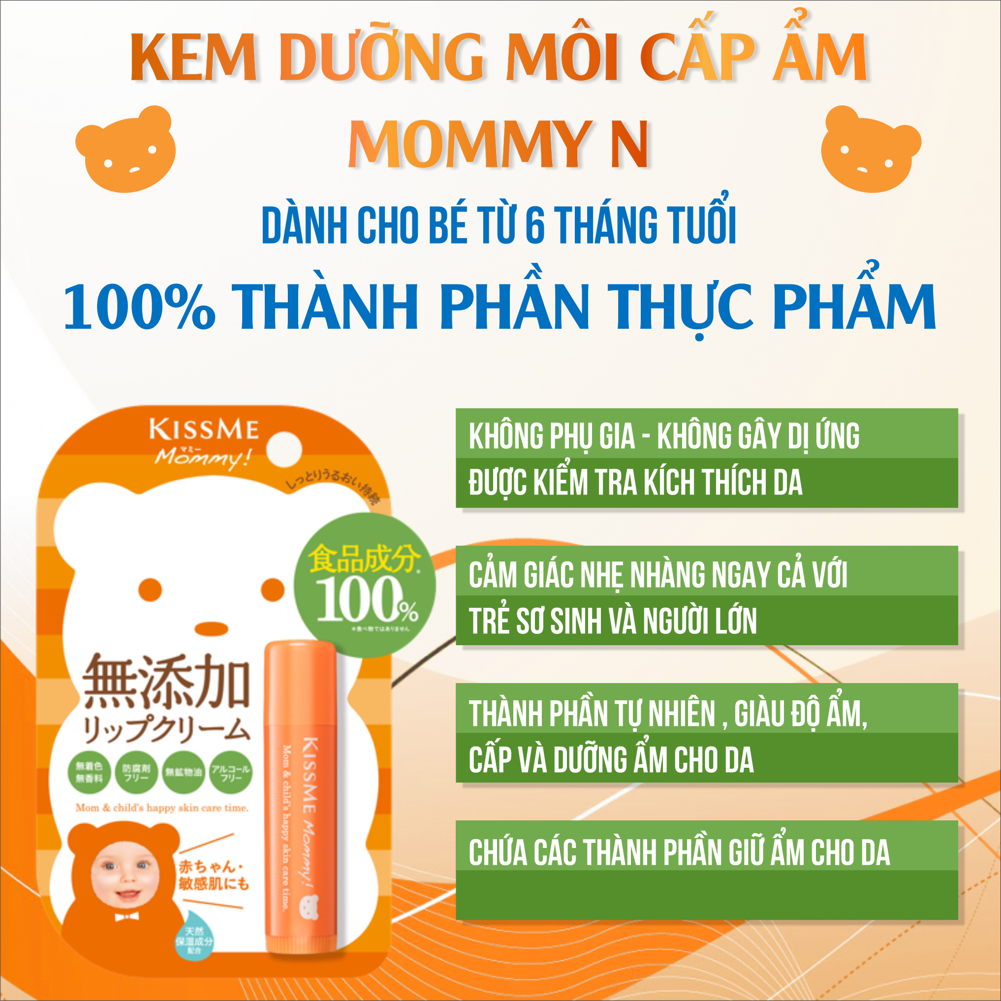 Kem Dưỡng Môi Cấp Ẩm Dành Cho Bé Từ 6 Tháng Tuổi Và Làn Da Nhạy Cảm Kissme Mommy Lip Cream N