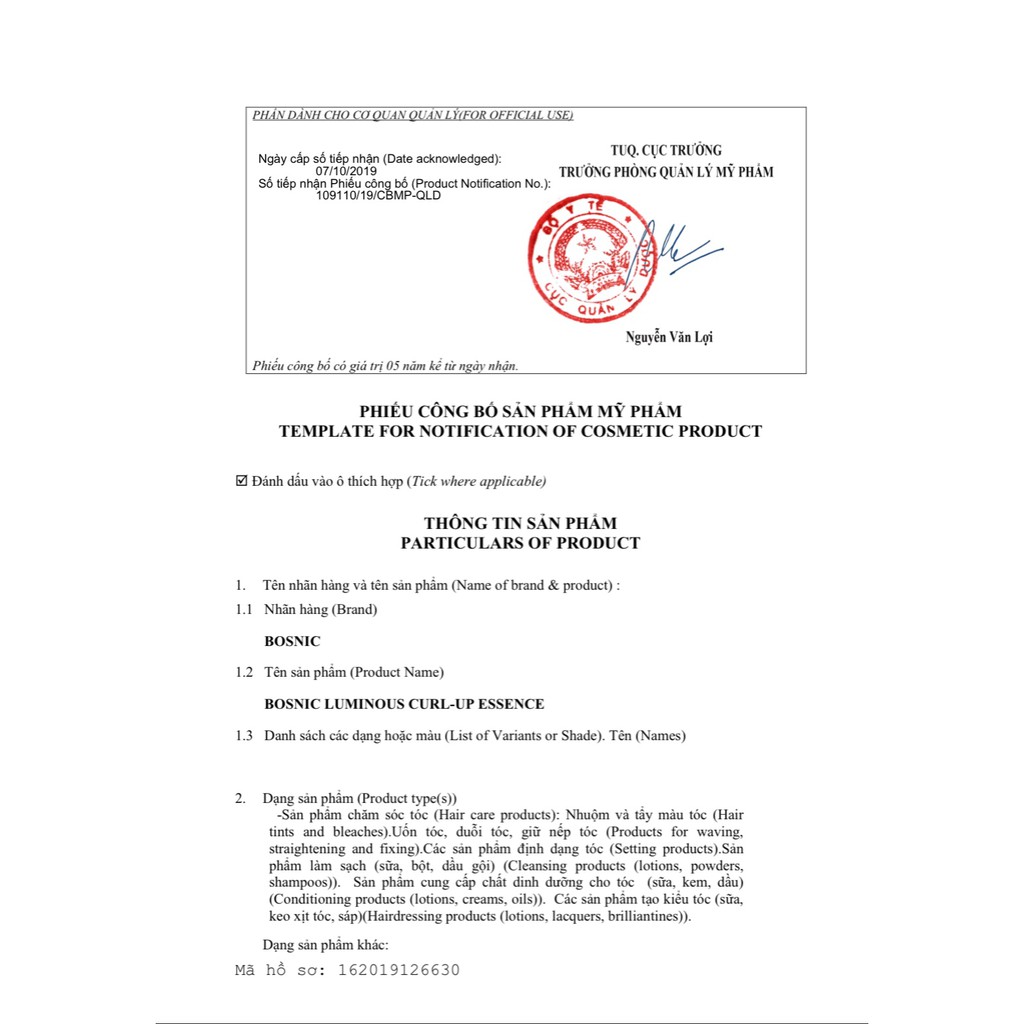 ✨Kem Dưỡng Tạo Lọn Tự Nhiên Dành Cho Tóc Uốn - Luminous Curl Up Essence BOSNIC 250ML