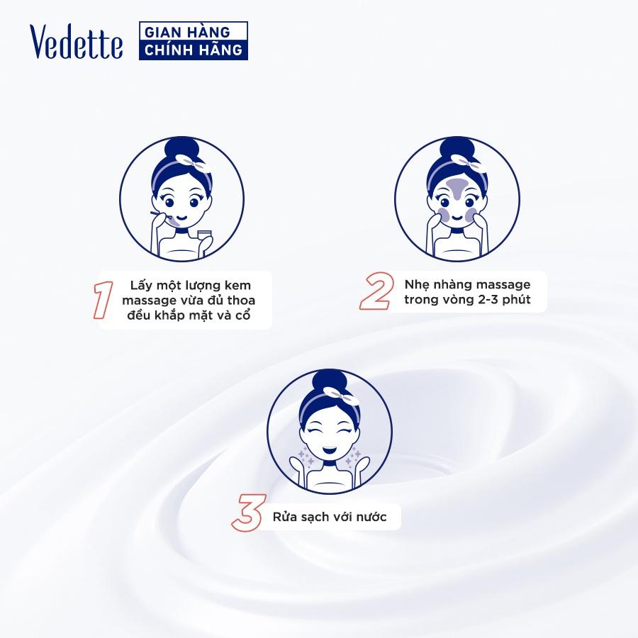 Lấy một lượng kem massage vừa đủ thoa đều khắp mặt và cổ, nhẹ nhàng massage trong vòng 2-3 phút. Sau đó, rửa sạch với nước. Sử dụng hàng ngày trước bước kem dưỡng để có kết quả tốt nhất.