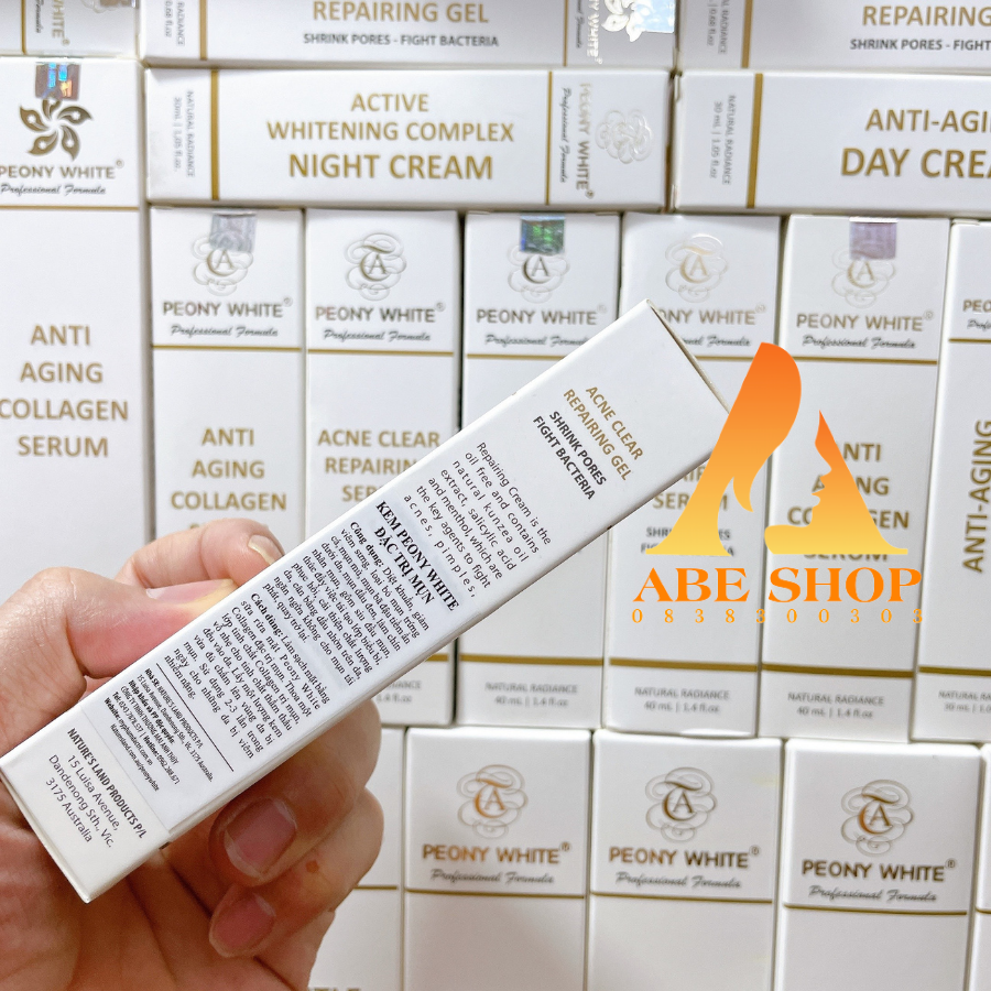 Kem Peony White Mụn - Acne Clear Repairing Cream mang đến làn da mịn mướt, sạch các vết mụn, nôt mụn tấy đỏ. Sản phẩm dành cho các loại da mụn đầu đen, da mụn