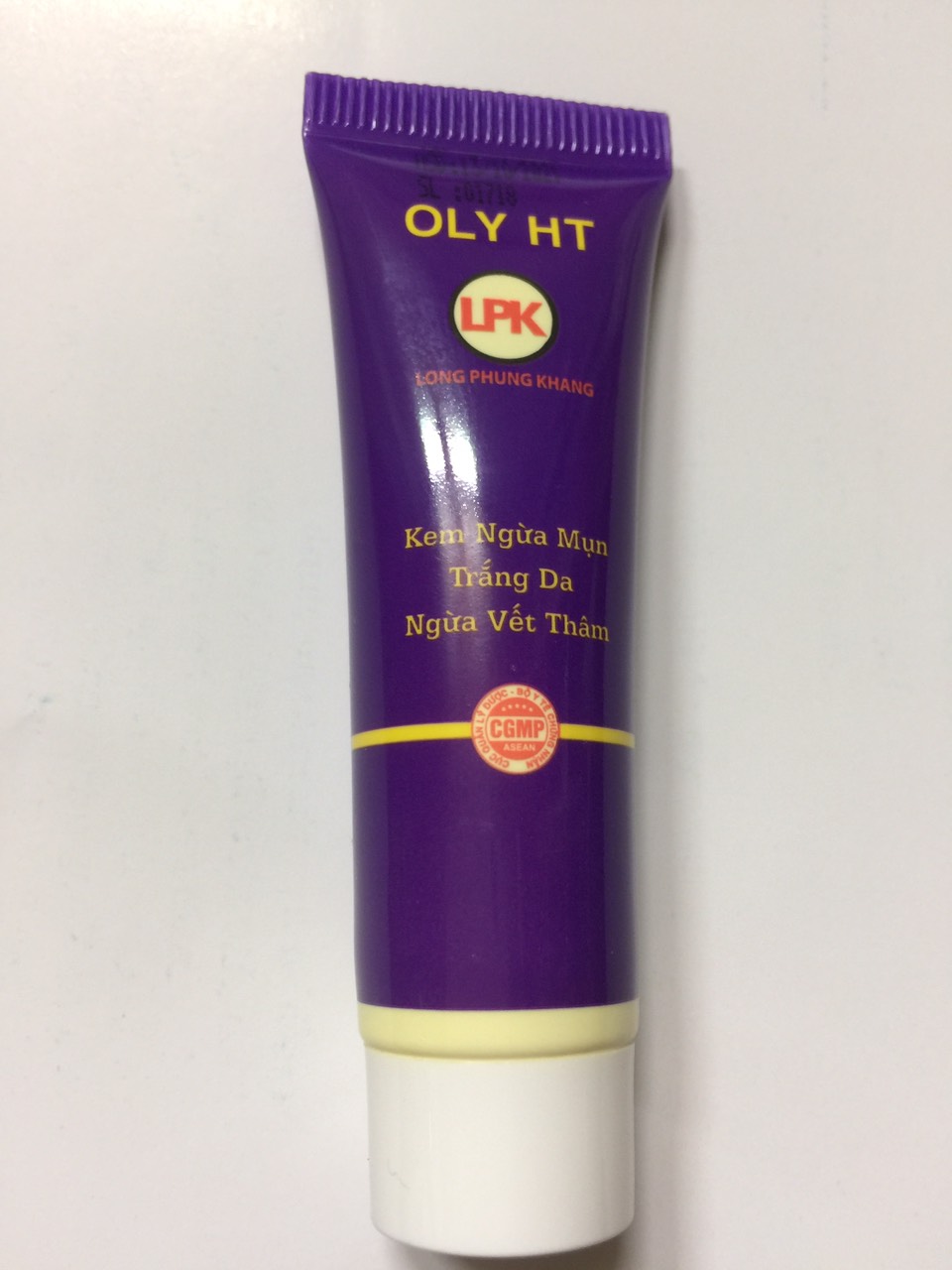 Kem Ngừa Mụn - Trắng Da - Ngừa Vết Thâm tuýp 12g Công dụng : Với kem mụn OLY HT làm sạch mụn bọc, mụn mủ, mụn cám, mụn đầu đen, mờ vết thâm, se khít lỗ chân lông, kem bổ sung dưỡng chất,giúp phục hồi da sau tổn thương do mụn và ngăn ngừa tốt sự hình thành mụn mới , cho bạn một làn da khoẻ mịn màng hơn. Cách dùng : Rửa mặt sạch bằng sửa rữa mặt hoặc nước ấm và lau khô rồi thoa kem lên vùng có mụn ngày 2 lần sáng và tối, sử dụng thật đơn giản và không mất thời gian hiệu quả 100% sau 5 ngày sử dụng. HSD : 3 năm kể từ ngày sản xuất