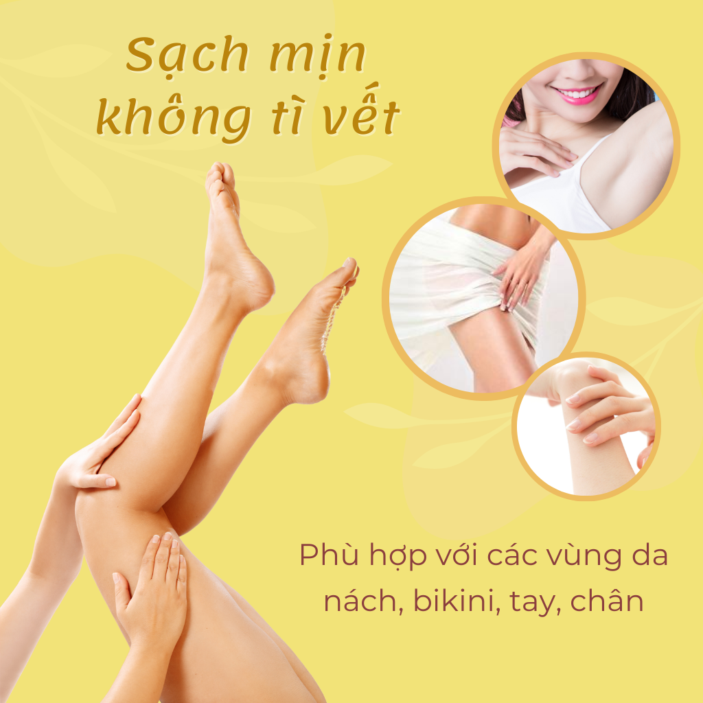 Giúp làm sạch nhẹ nhàng lông trên cơ thể chỉ trong 3-5 phút.