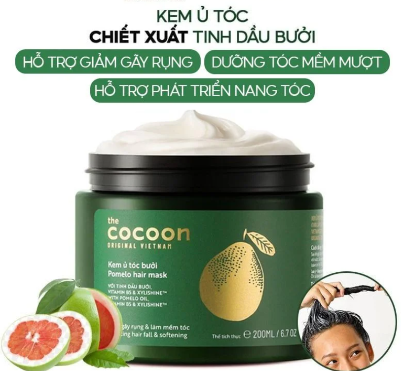 Kem Ủ Tóc Bưởi Giảm Gãy Rụng Tóc Mềm Mượt Chắc Khỏe Cocoon Pomelo Hair Mask 200ml#myphamthuanchay