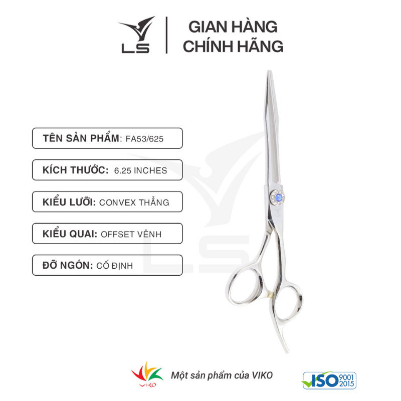 Kéo cắt tóc LS là một thương hiệu được sản xuất bởi Công ty TNHH Dụng cụ cắt Việt Hàn (Viko cutting tools Company limited) - đáp ứng đầy đủ các tiêu chuẩn quốc tế. Kéo LS thuộc dòng sản phẩm phổ thông, hướng tới đại đa số khách hàng trung bình tại các tỉnh thành trong cả nước. Với hệ thống bán hàng rộng khắp được xây dựng trong 14 năm phát triển, Kéo LS luôn nỗ lực phục vụ khách hàng một cách thuận tiện nhất. THÔNG TIN SẢN PHẨM KÉO CẮT TÓC LS FA53/6.25