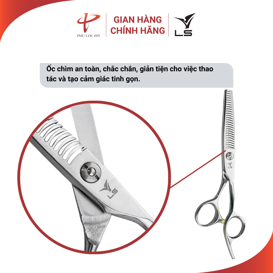 Với kiểu lưỡi răng lược và kích thước 6.0, sản phẩm rất phù hợp với kỹ thuật làm mỏng và tạo tầng lớp. Dòng kéo cắt tóc cao cấp LS luôn đảm bảo chất lượng (cắt không chạy tóc). Sản phẩm được đánh bóng qua gần một trăm bước vì vậy rất bóng, mịn và sang trọng.