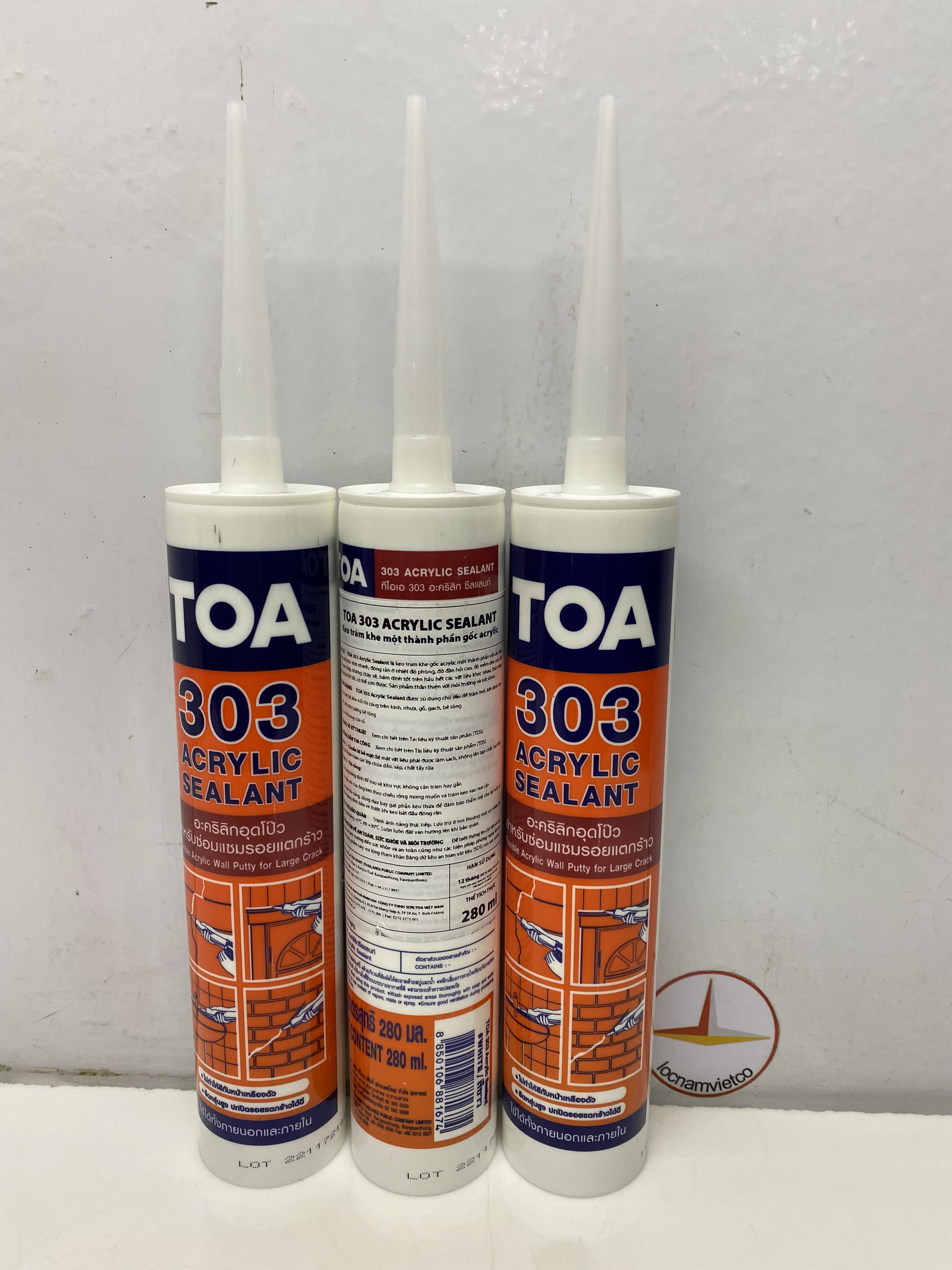 Toa 303 Acrylic sealant được sử dụng chủ yếu trám trét kết dính cho các khe hở, ke nối thi công trên kính , nhựa gỗ, gạch, bê tông, khung cửa, Cửa sổ, sửa chữa các vết nứt trên tường hồ vữa.