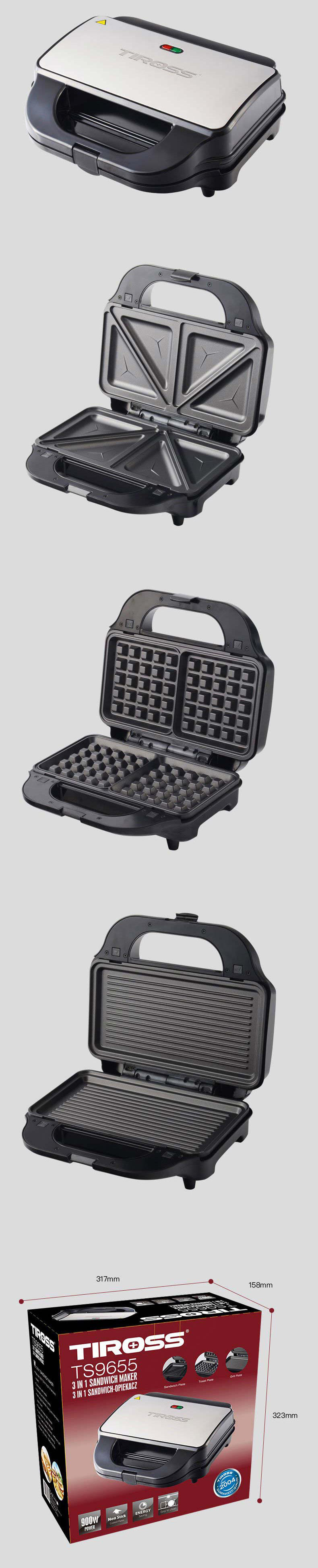 ✨Kẹp nướng sandwich 3 in 1 Tiross TS9655 (900W) - Hàng chính hãng