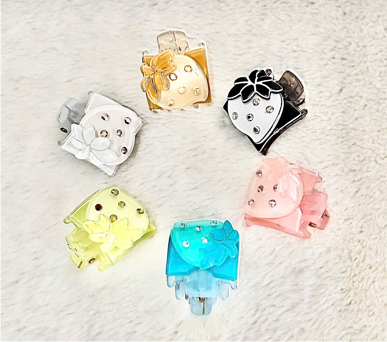 ✨Kẹp Tóc Mái Mini Hình Quả Dâu Đính Đá – Phụ Kiện Trẻ Trung Cho Mái Tóc Xinh!