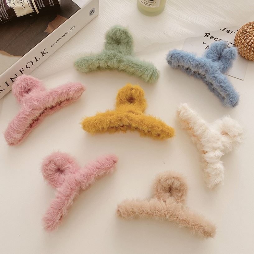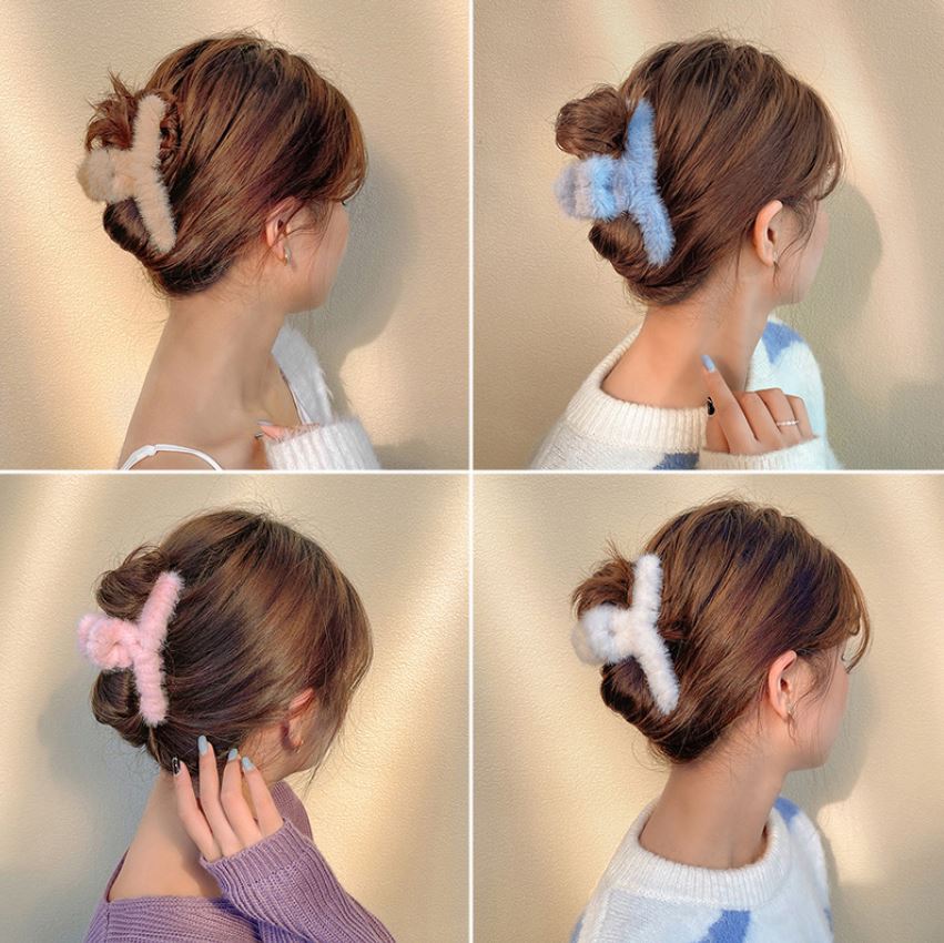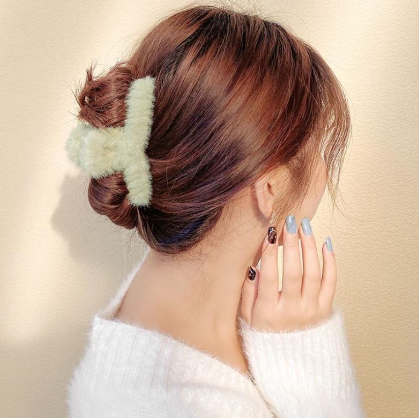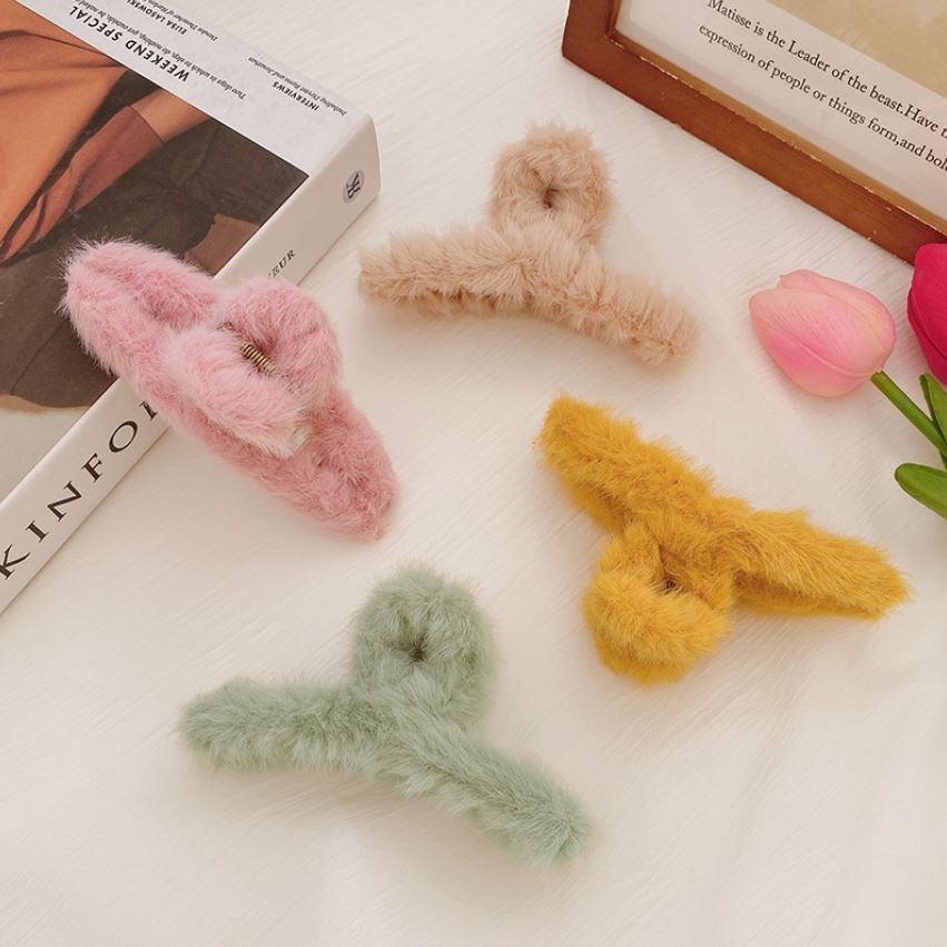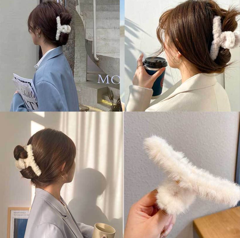 ✨Kẹp Tóc Phủ Lông Cỡ Lớn Phong Cách Hàn Quốc, Kẹp Tóc Thu Đông Dễ Thương