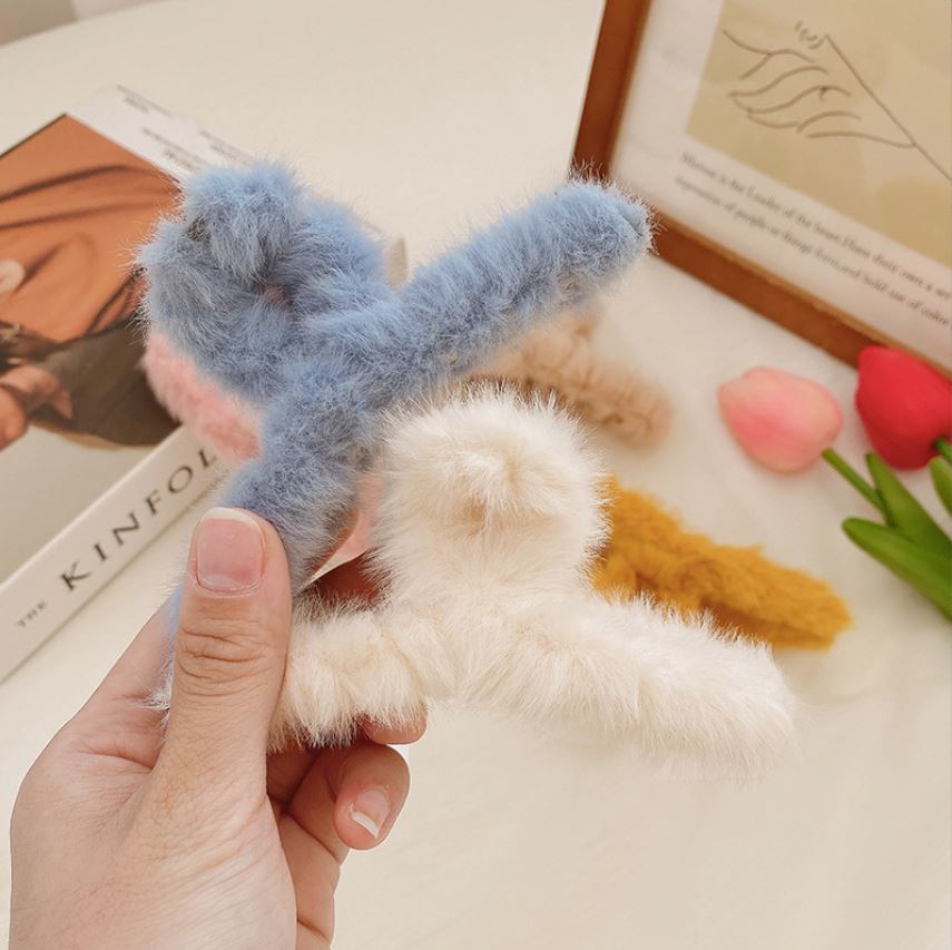 Kẹp Tóc Phủ Lông Cỡ Lớn Phong Cách Hàn Quốc, Kẹp Tóc Thu Đông Dễ Thương - BEYOU