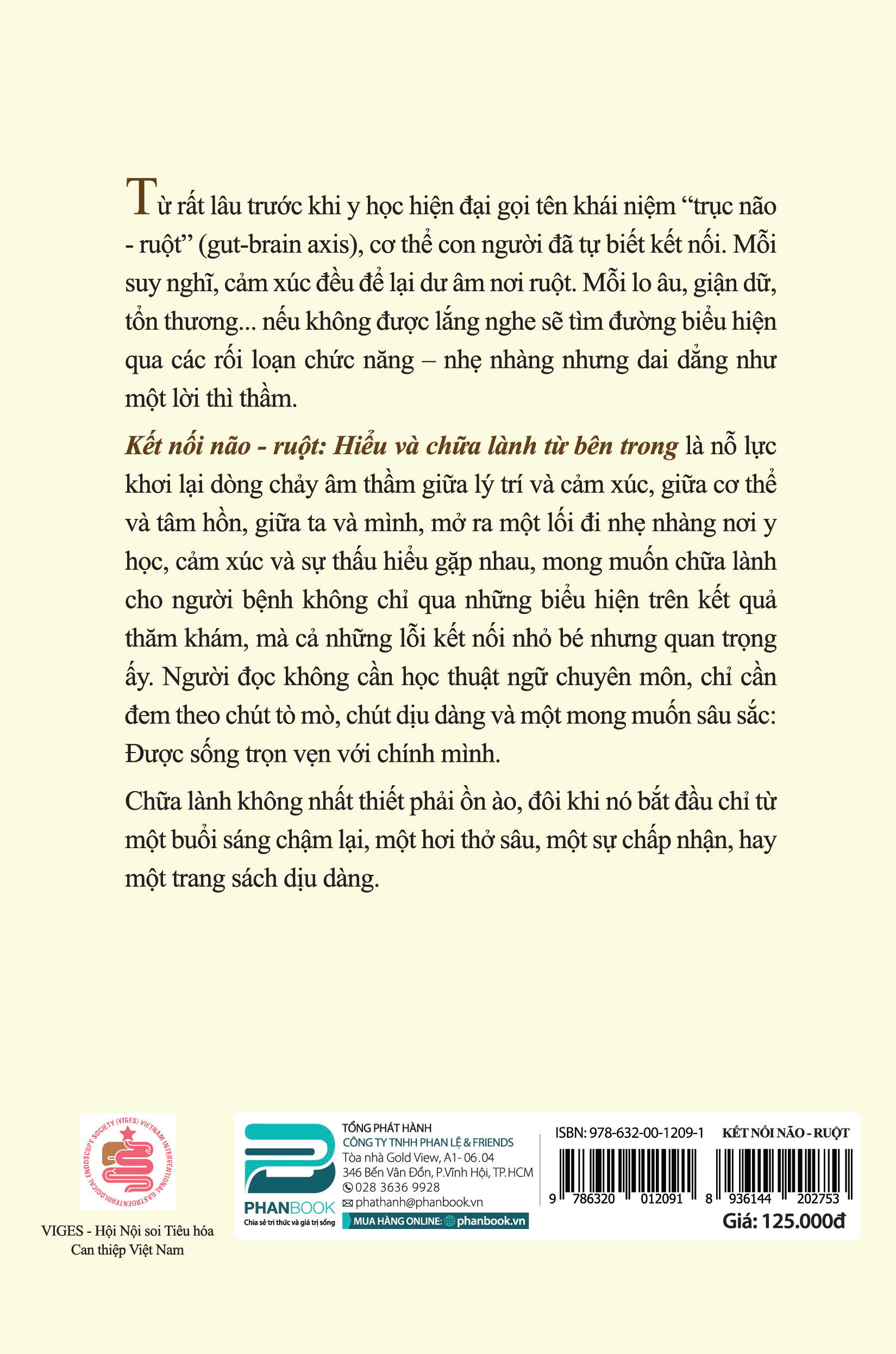 "Kết nối não - ruột: Hiểu và chữa lành từ bên trong" là nỗ lực khơi lại dòng chảy âm thầm giữa lý trí và cảm xúc, giữa cơ thể và tâm hồn, giữa ta và mình, mở ra một lối đi nhẹ nhàng nơi y học, cảm xúc và sự thấu hiểu gặp nhau, mong muốn chữa lành cho người bệnh không chỉ qua những biểu hiện trên kết quả thăm khám, mà cả những lỗi kết nối nhỏ bé nhưng quan trọng ấy. Người đọc không cần học thuật ngữ chuyên môn, chỉ cần đem theo chút tò mò, chút dịu dàng và một mong muốn sâu sắc: Được sống trọn vẹn với chính mình.
