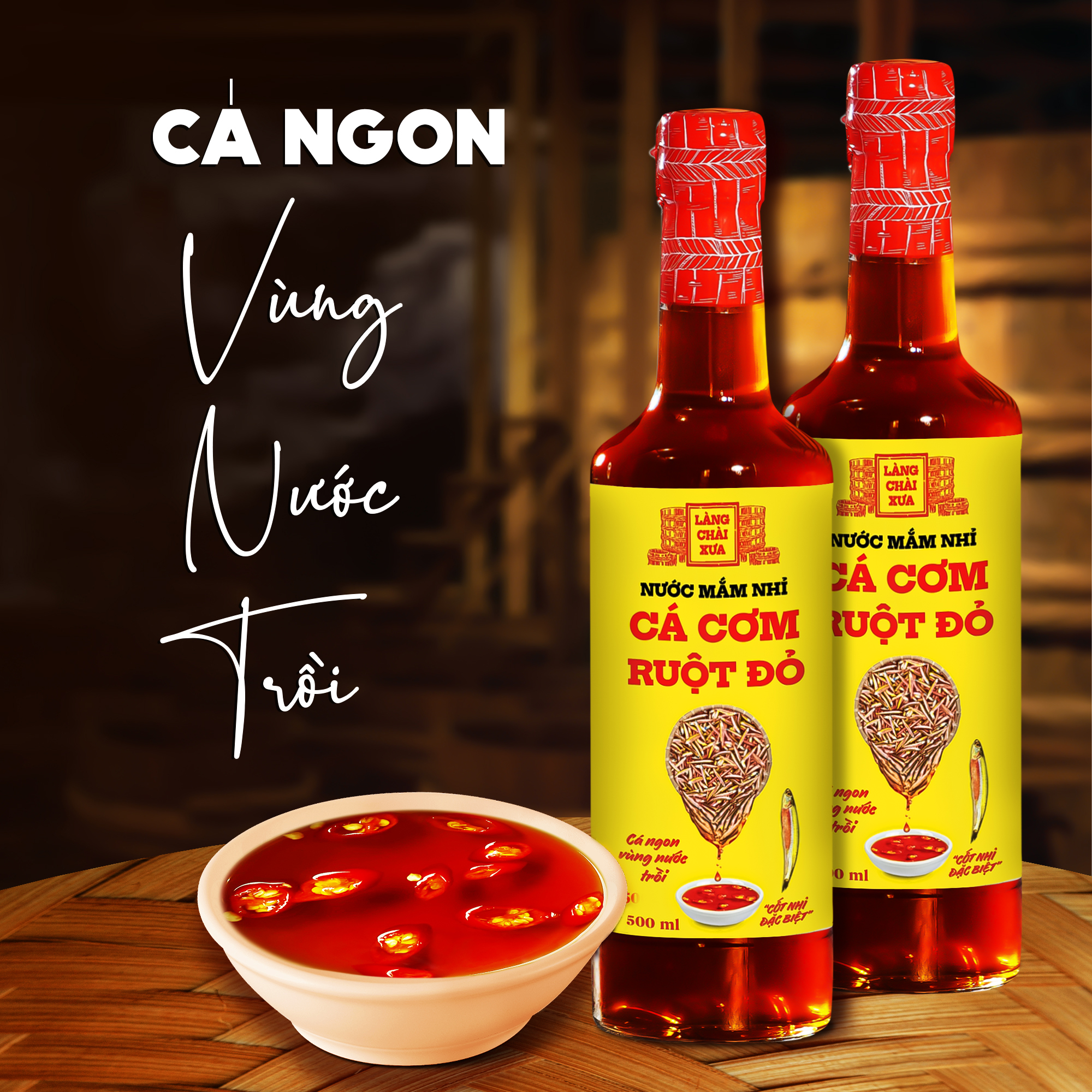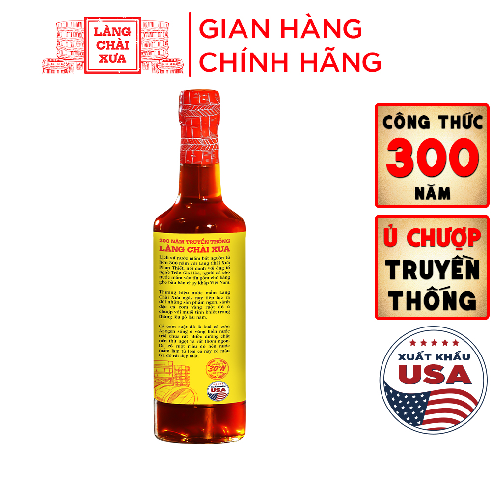[THÙNG 6 CHAI] Nước mắm nhỉ cá cơm ruột đỏ Làng Chài Xưa 500ml chai thủy tinh cá cơm vàng ngon vùng nước trồi 300 năm truyền thống MÔ TẢ SẢN PHẨM: Nước mắm nhỉ cá cơm Làng Chài Xưa là một trong những loại nước mắm được nhiều khách tin tưởng lựa chọn và đặc biệt ngon khó cưỡng của bảo tàng nước mắm Làng Chài Xưa, được làm từ loại cá cơm vàng ruột đỏ - cá ngon vùng nước trồi và muối tinh khiết, được ủ chượp cho ra hượng vị ngon sánh vị. CÁ CƠM VÀNG RUỘT ĐỎ VÙNG NƯỚC TRỒI ! Loại cá cơm này có thịt màu vàng nhạt và ruột màu đỏ nên cũng thường được ngư dân gọi là cá cơm vàng ruột đỏ. Cá cơm vàng ruột đỏ có tên gọi tiếng Anh là Apogen Anchovy. Chúng xuất hiện từ tháng 5 cho đến tháng 9 hàng năm với số lượng ít nên khai thác không nhiều. Sự ít ỏi về sản lượng này là do chúng chỉ xuất hiện khi có hiện tượng nước trồi ở vùng biển Phan Thiết. Đây là một trong 18 "vùng biển nước trồi" trên thế giới có dòng nước từ đáy đưa phù du trồi lên bề mặt vào mùa gió Tây Nam hàng năm giúp cung cấp thức ăn cho cá cơm vốn sống ở tầng nổi Cũng chính hiện tương nước trồi đã cung cấp lượng dinh dưỡng lớn khiến cá cơm vàng ruột đỏ to béo vượt trội. Khi làm nước mắm, cá cơm vàng ruột đỏ cho ít nước nhưng lại có màu trà đỏ rất đẹp, thơm vị thịt chín, cho đạm cao và hậu vị ngọt. Chính vì sự hiếm có và đặc biệt đó khiến cho giá cá cơm vàng ruột đỏ cao hơn các loại cá cơm khác trên thị trường và vì vậy nước mắm làm từ cá cơm vàng ruột đỏ cũng có giá thành cao nhưng mang lại chất lượng khác biệt THÔNG TIN SẢN PHẨM