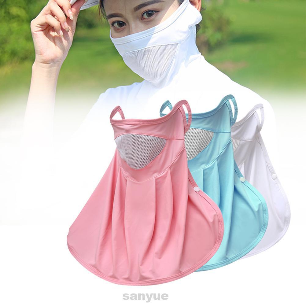 - Dây đeo tai chắc chắn, khăn dài có thể bảo vệ cả phần cổ tránh tác hại của ánh nắng, mặt trước khẩu trang có lưới thoáng khí, khử mùi.