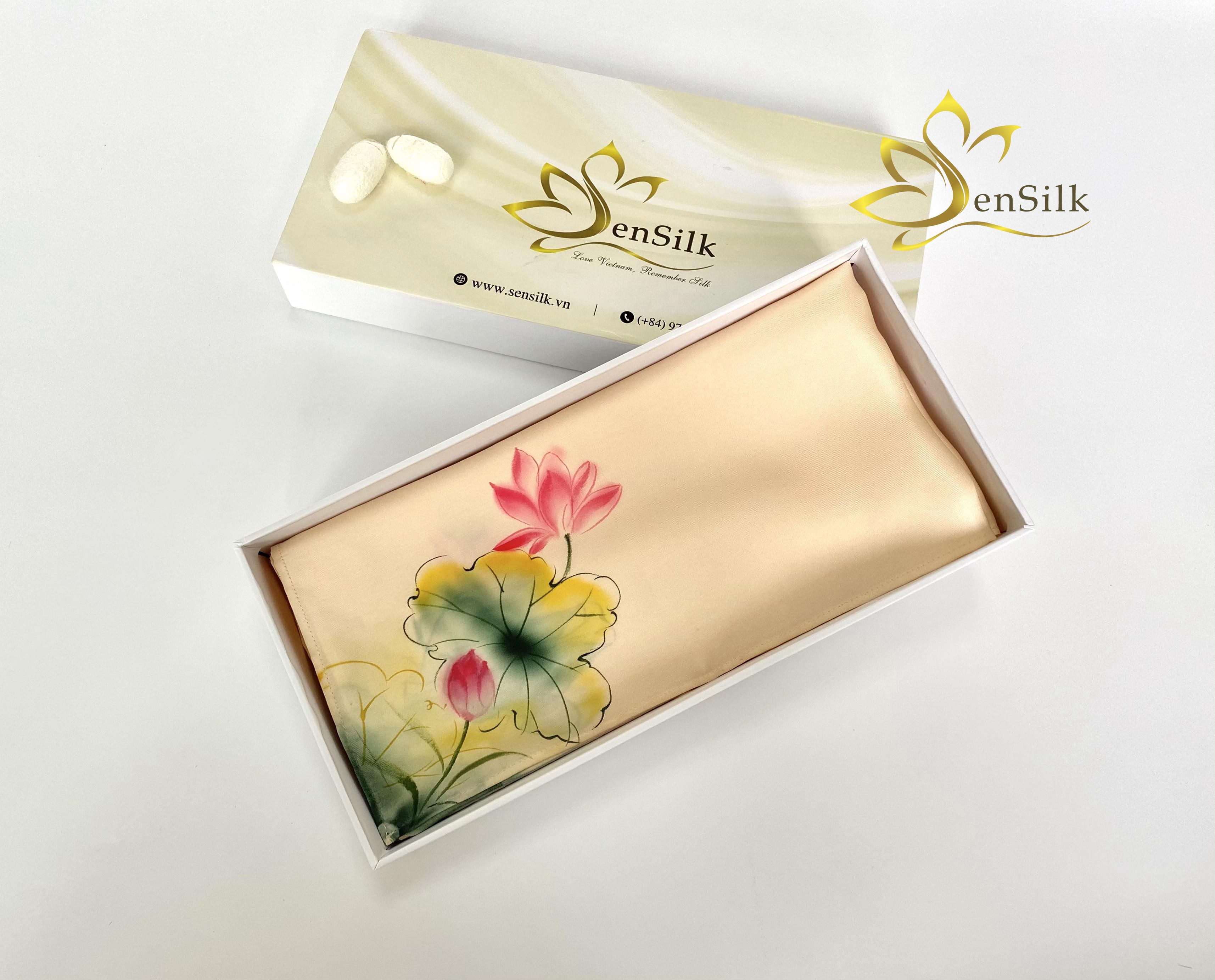 Khăn Tơ Tằm Vẽ Tay Thủ Công SenSilk là tác phẩm nghệ thuật có 1 không 2 được vẽ bởi nghệ nhân làng nghề